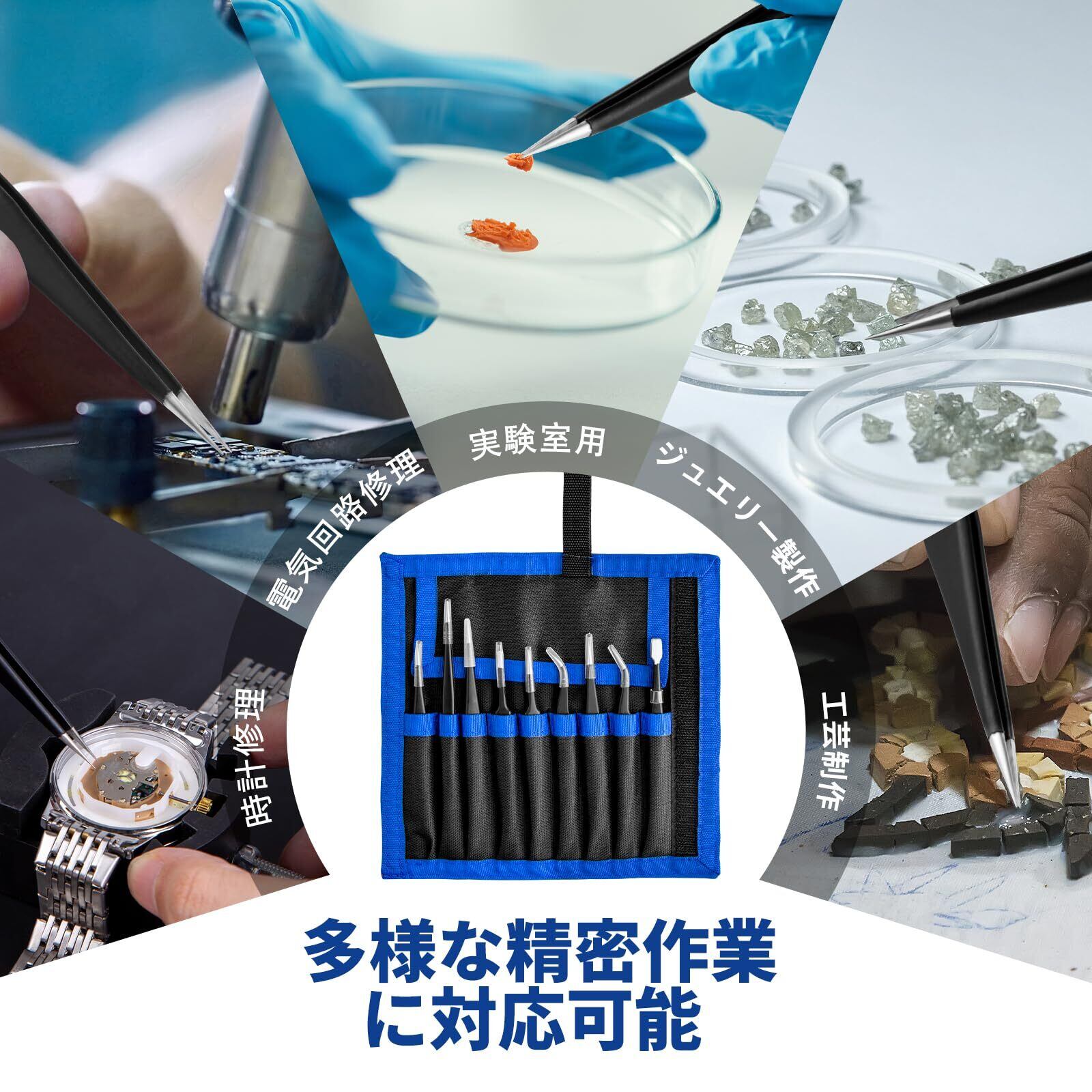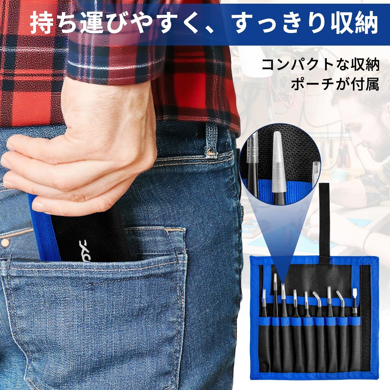 XOOL 精密ピンセット 9本セット ESD 静電防止 ステンレス製 ツイーザー 電子機器修理 宝石製作 ネイルアート用 収納袋付き