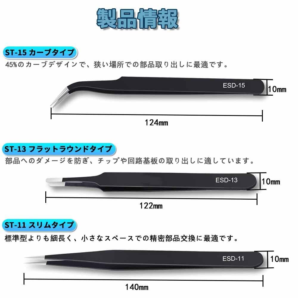 精密ピンセット (3本セット) 極細ピンセット 高精度 静電防止 ツイーザー 細い プラモデル 模型製作 手芸 ツイーザー 防磁 防腐 防錆 耐酸 ステンレス製 模型製作 電子機器修理 DIY 宝石製作 ネイルアート用 3本セット | AKIショップ