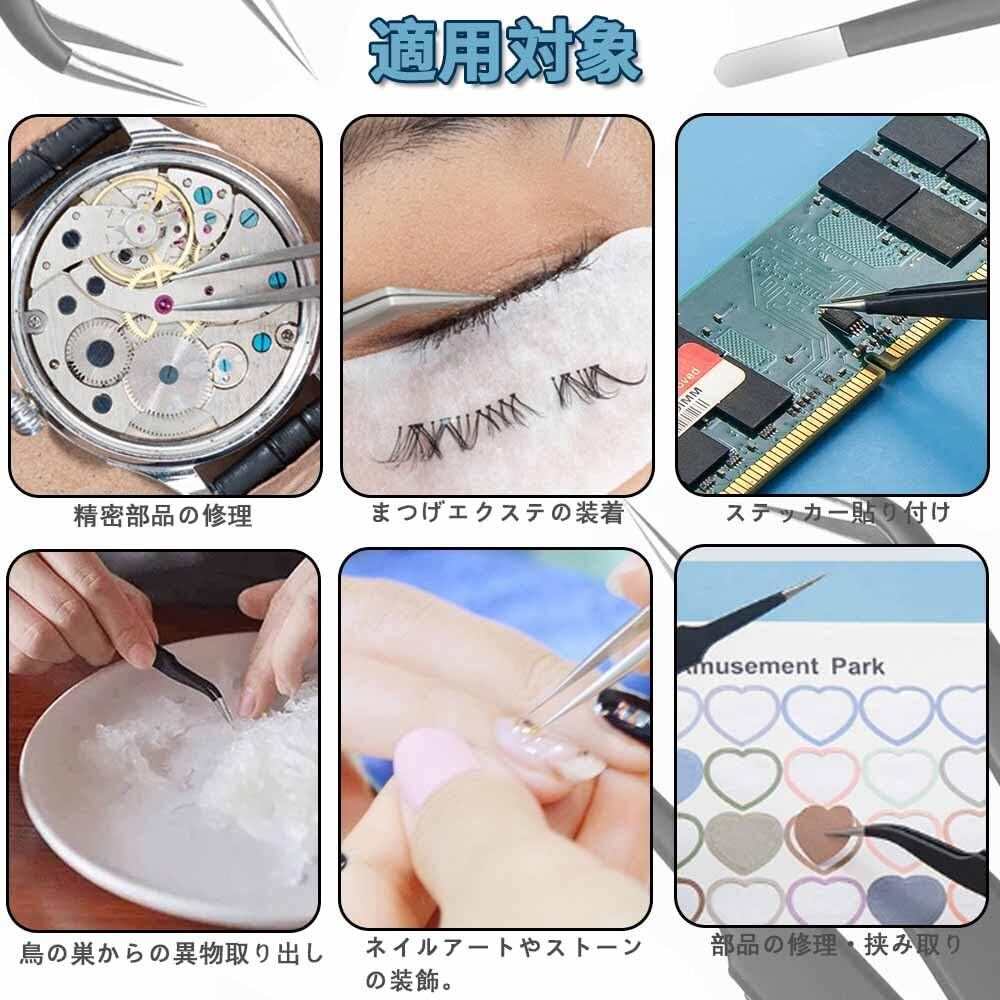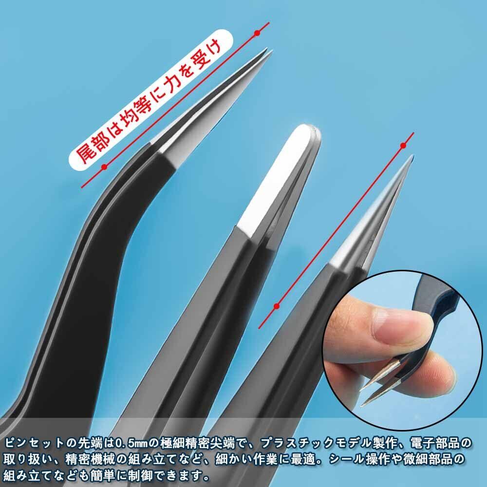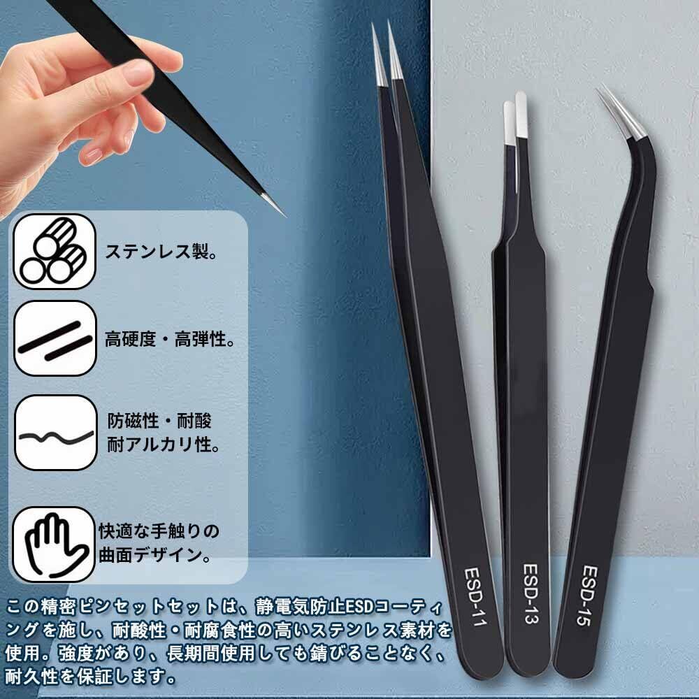 精密ピンセット (3本セット) 極細ピンセット 高精度 静電防止 ツイーザー 細い プラモデル 模型製作 手芸 ツイーザー 防磁 防腐 防錆 耐酸 ステンレス製 模型製作 電子機器修理 DIY 宝石製作 ネイルアート用 3本セット