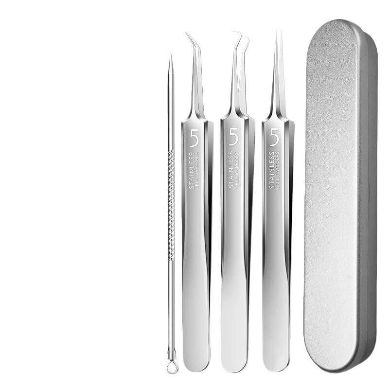 精密ピンセット 角栓取り ピンセット 先端0.01㎜ 毛抜き コメドプッシャー(収納ケース付)角栓 いちご鼻 毛抜き黒ずみ毛穴ケア専用 精密な作業が可能 角栓取り ピンセット (4本)
