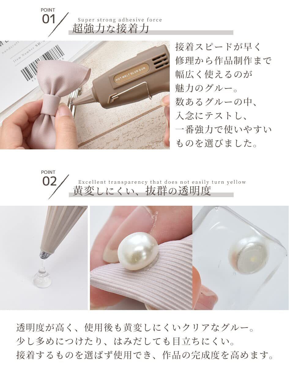 ■ご使用方法:※別売りのMYmamaオリジナル グルーガン(B09MY8LR78)を使用します。別途ご用意下さい。 1,グルーガン本体の後ろから挿入してください 2,電源を入れて3~5分予熱した後、引き金を引くとグルー(接着剤)が出ます ※一度本体に挿入したグルースティックは抜き取らないでください。使いきれなかった場合は、挿入したまま保管して下さい。 次の使用時は、そのまま電源をいれて3~5分予熱してからご使用下さい。