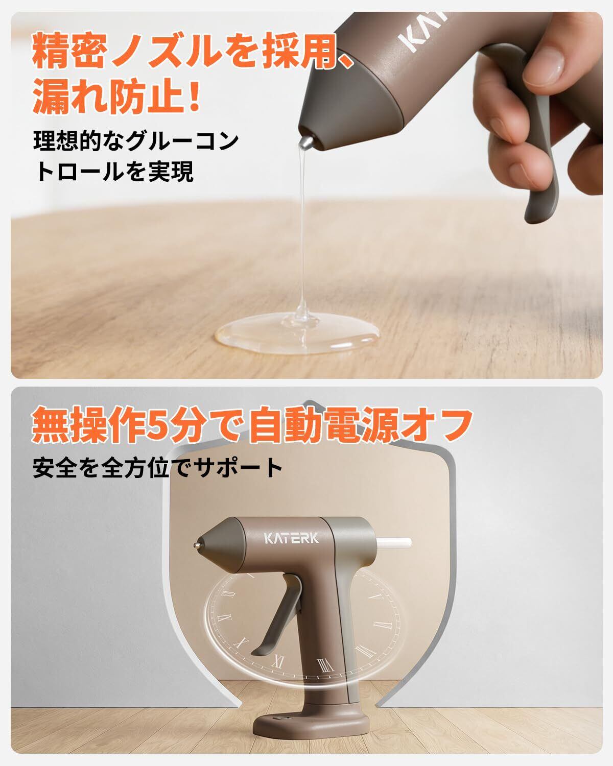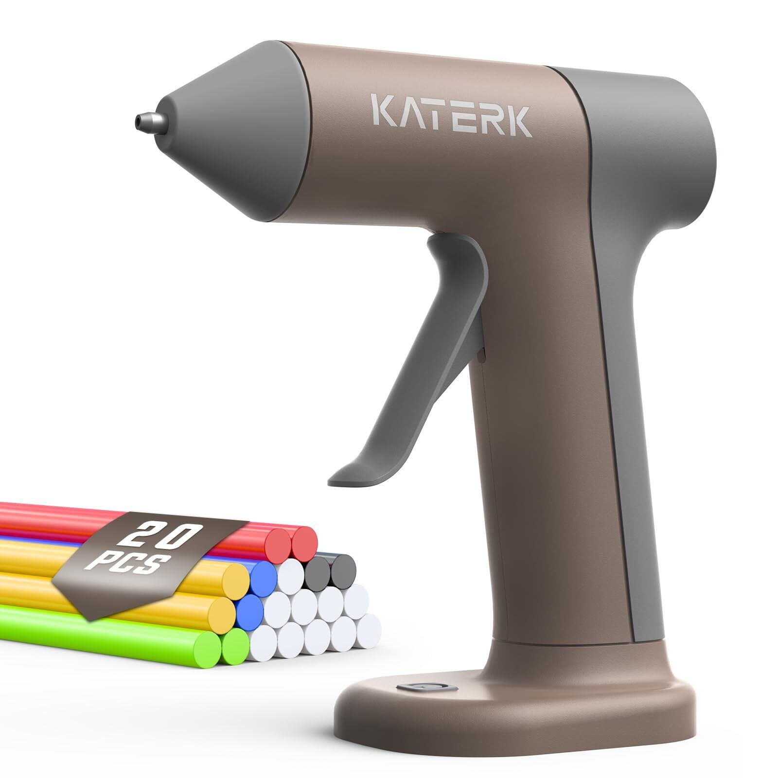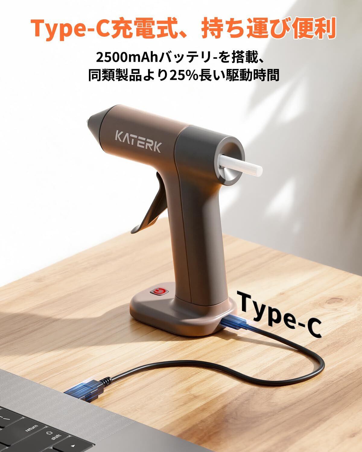 Katerk グルーガン コードレス 30秒急速加熱 充電式 グルースティック20本付き ホットボンド 2500mAh内蔵バッテリー 自動電源オフ機能付き 液漏れ防止 小型軽量 コンパクト DIY・手芸・修理に最適)