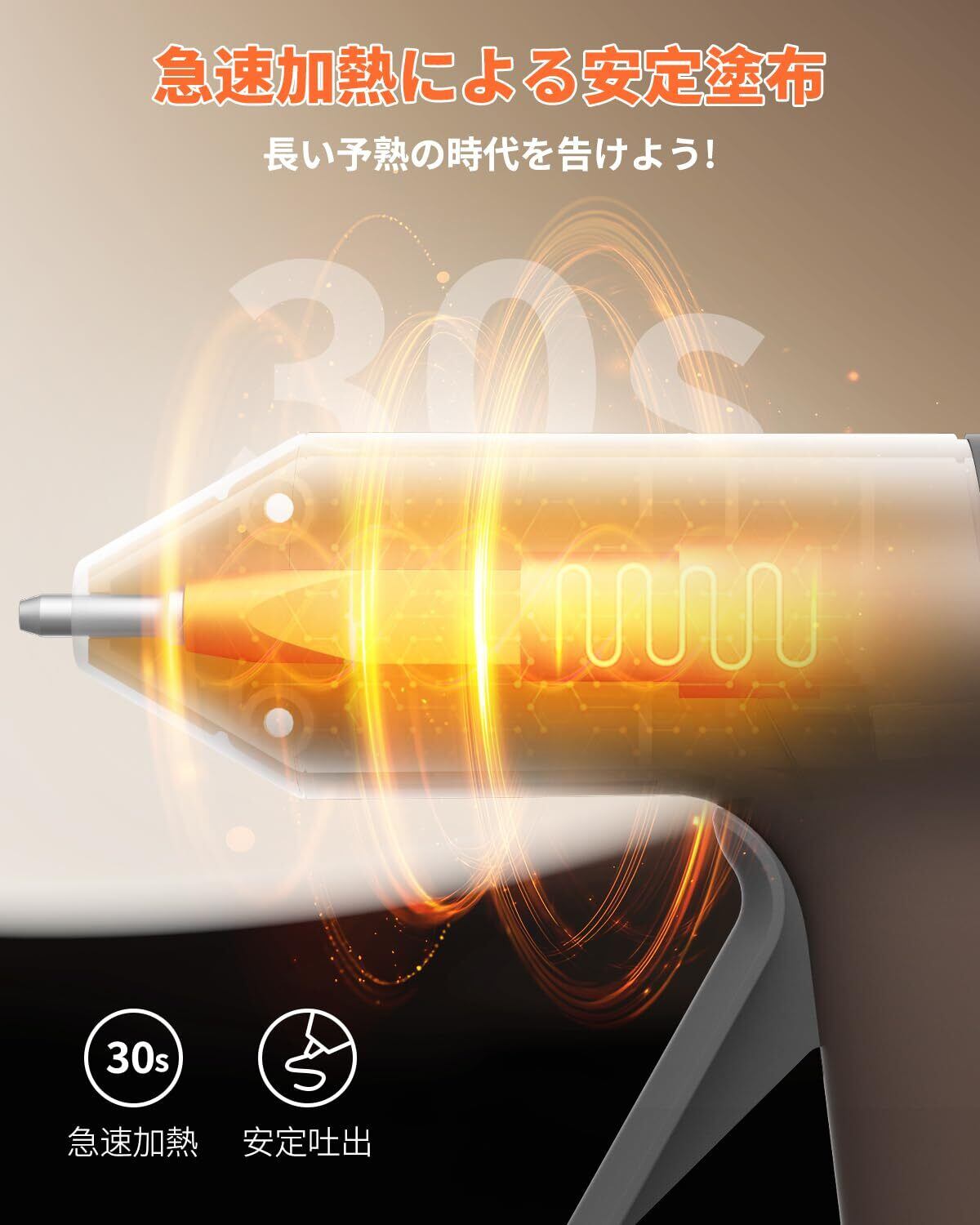 2️⃣ 30秒で急速加熱: このグルーガンは電源を入れてからわずか 30 秒で使用可能です。作業の待ち時間を短縮し、家庭・学校・オフィスでのDIY、修理、手芸や装飾など、幅広いシーンに対応します。高温タイプで、強力な接着力を発揮します。