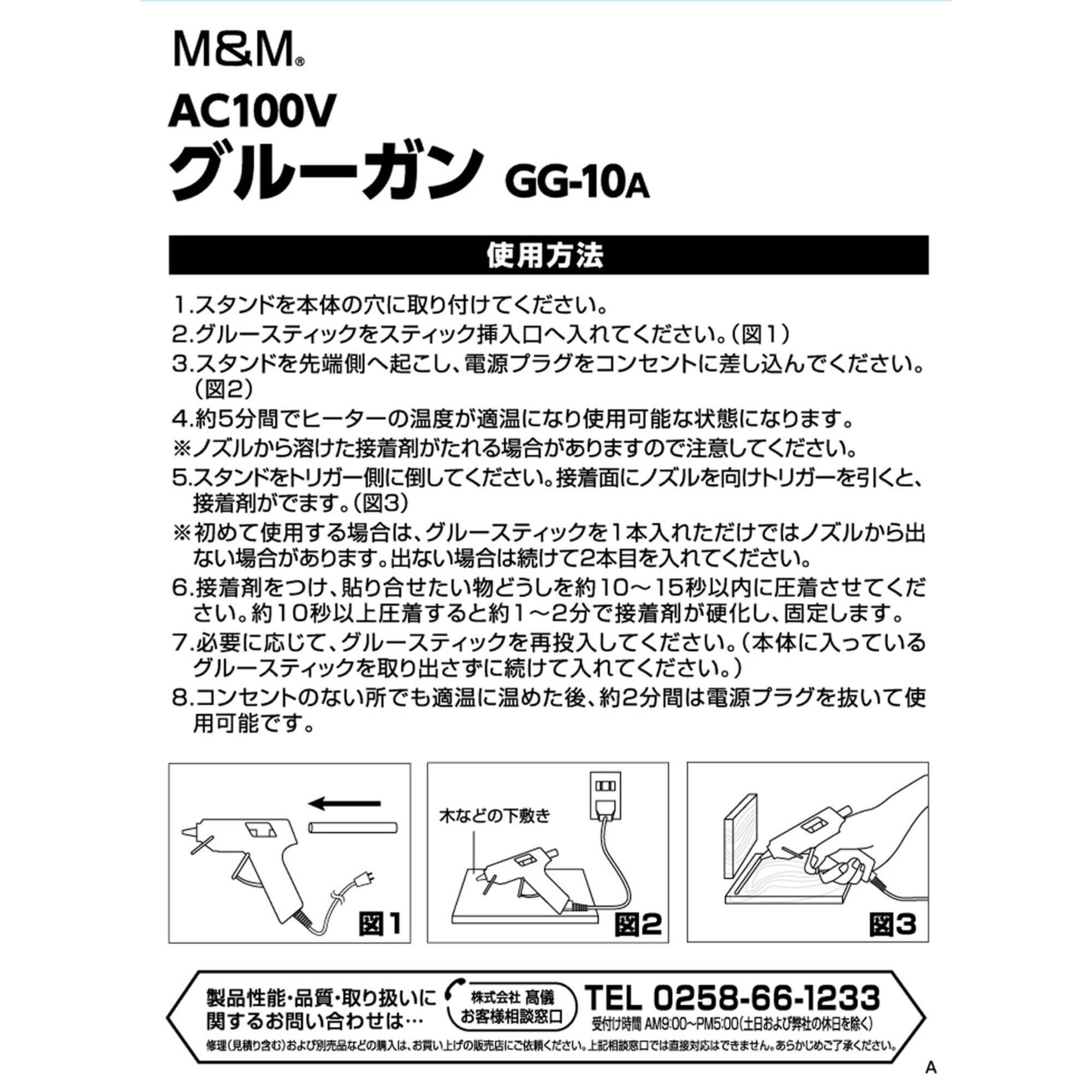 高儀 AC100V グルーガン GG-10A M&M φ7~7.5mm グルースティック 2本付 接着 固定 貼り付け スタンド付 電源コード式 1.5m たかぎ