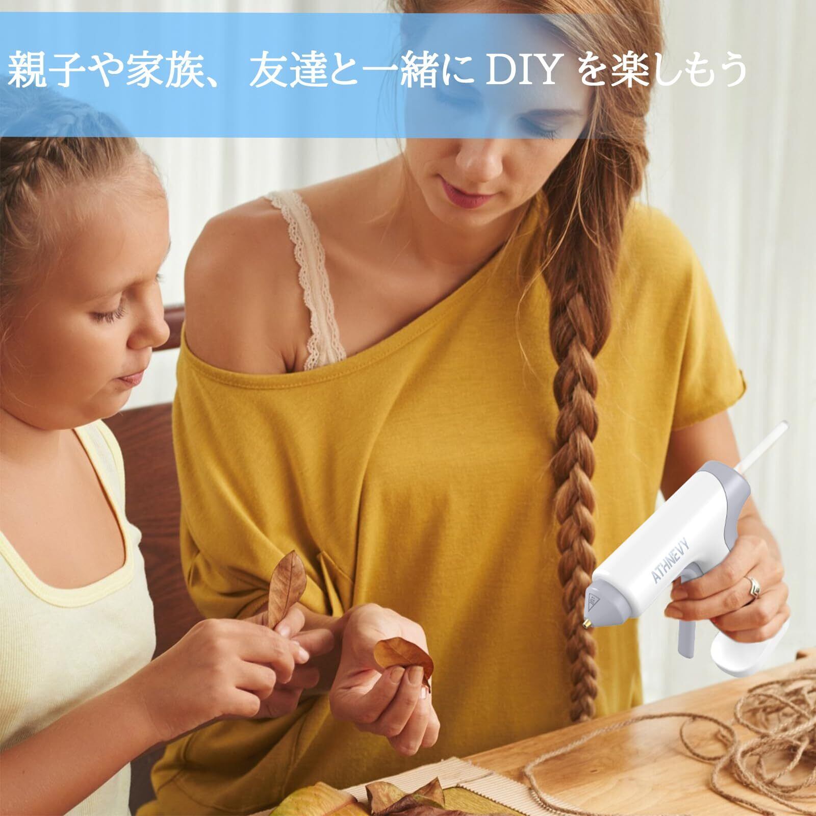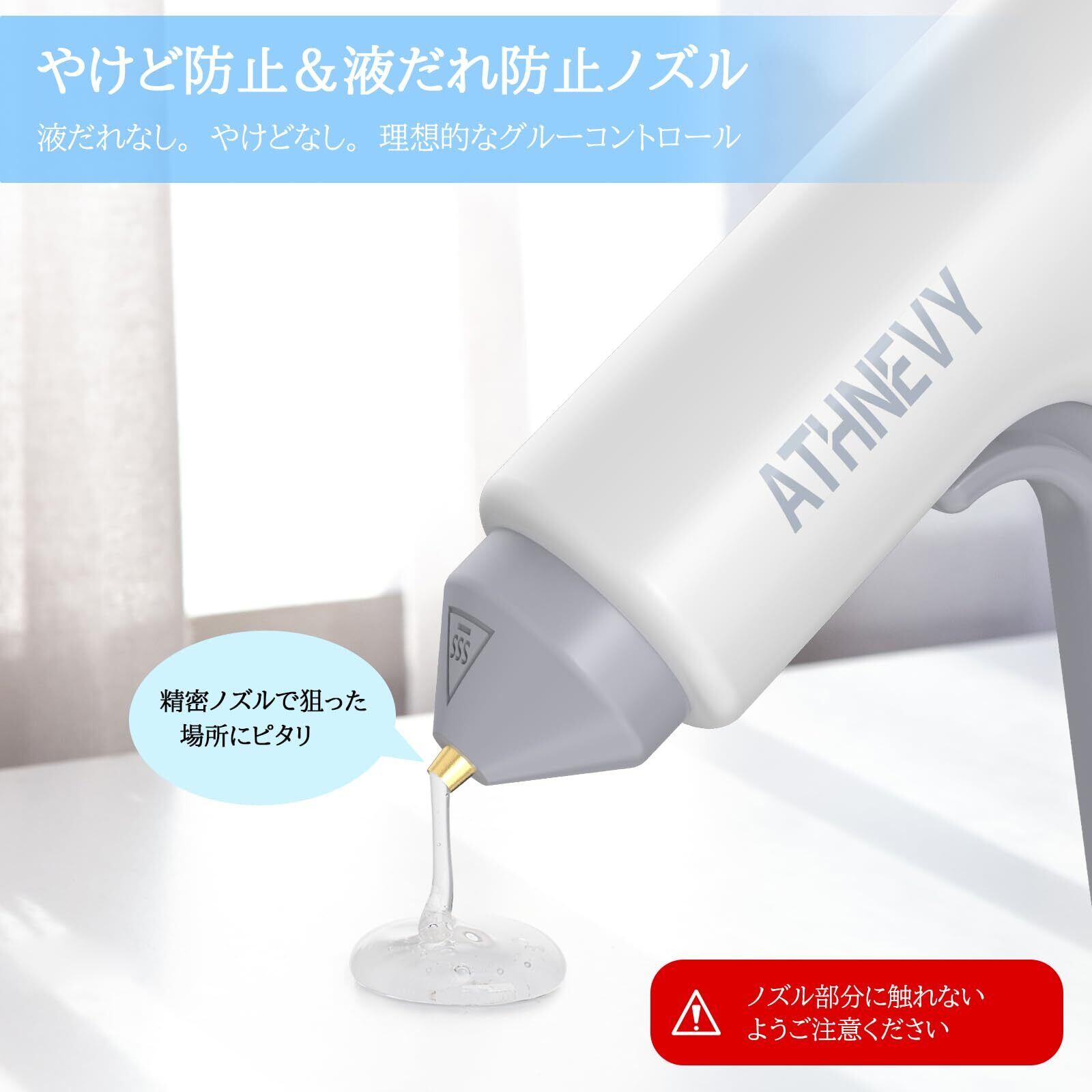 【安全性を高めるスマート機能】5分間操作がない場合、自動で電源がオフになる省エネ&安全設計です。さらに耐熱シリコンで覆われたノズルが火傷を防止し、初心者やお子様と一緒の工作にも安心してお使いいただけます。