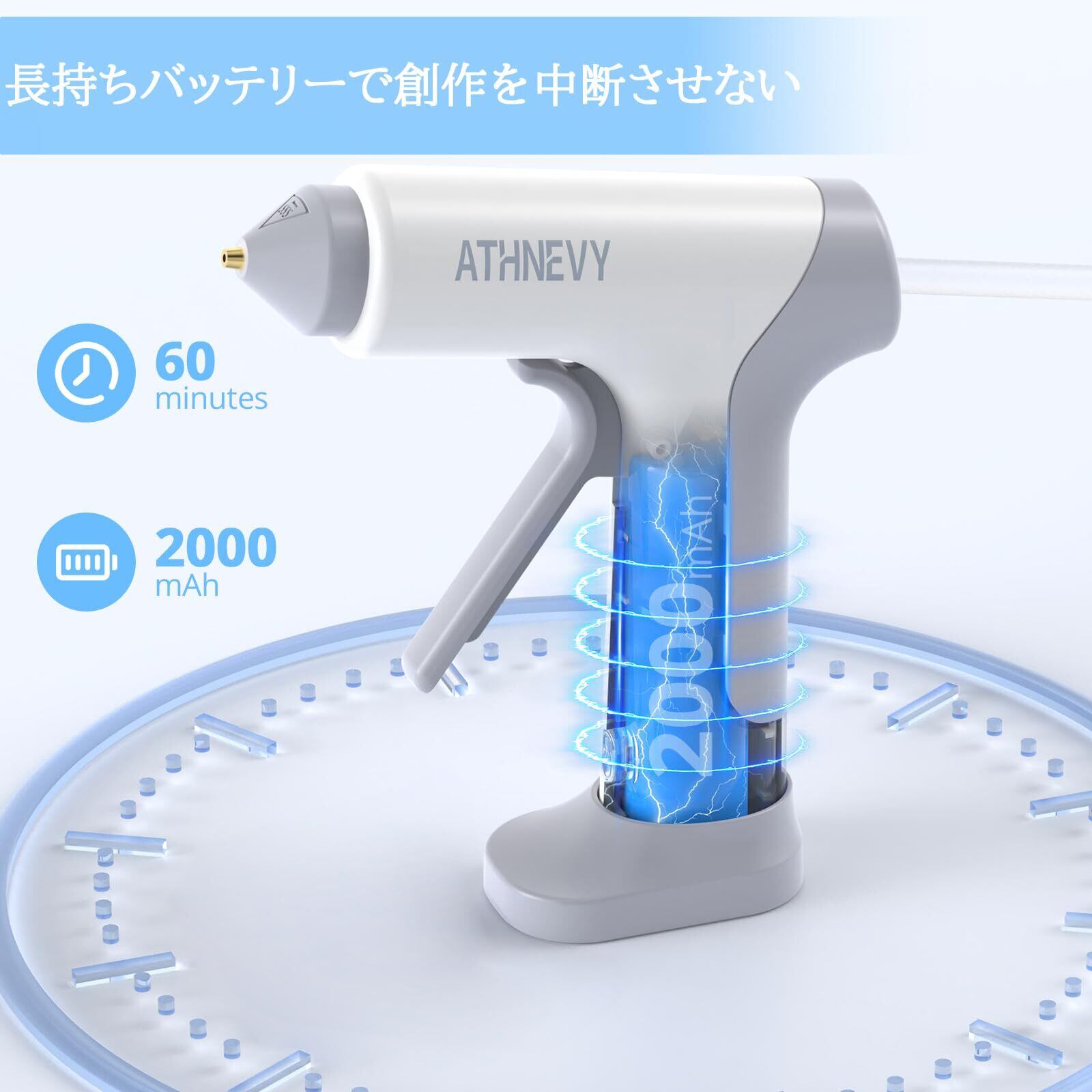 グルーガン コードレス 充電式 ボンドガン 10秒急速加熱 スティック30本付 2000mAh 4V 20W Type C スマートオフ 液漏れ防止 やけど防止 強力粘着 補修 DIY 手芸 木工 (ホワイト)