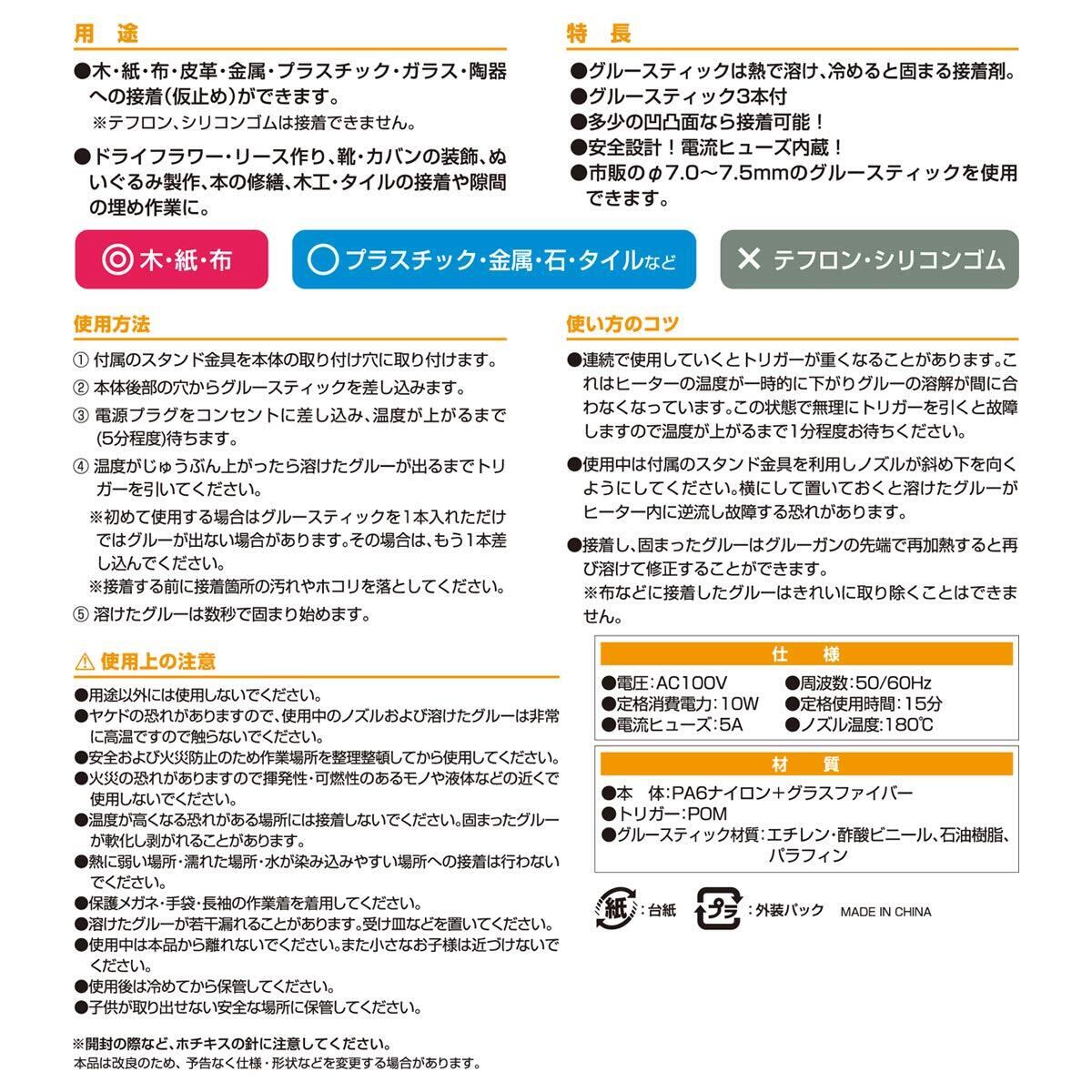 別売品:「グルースティック クリア 20本 No.1 (JAN:4969968146228)」、「グルースティック クリア 100本 No.11 (JAN:4969968146174)」、「グルースティック アソート 20本 No.2 (JAN:4969968146235)」