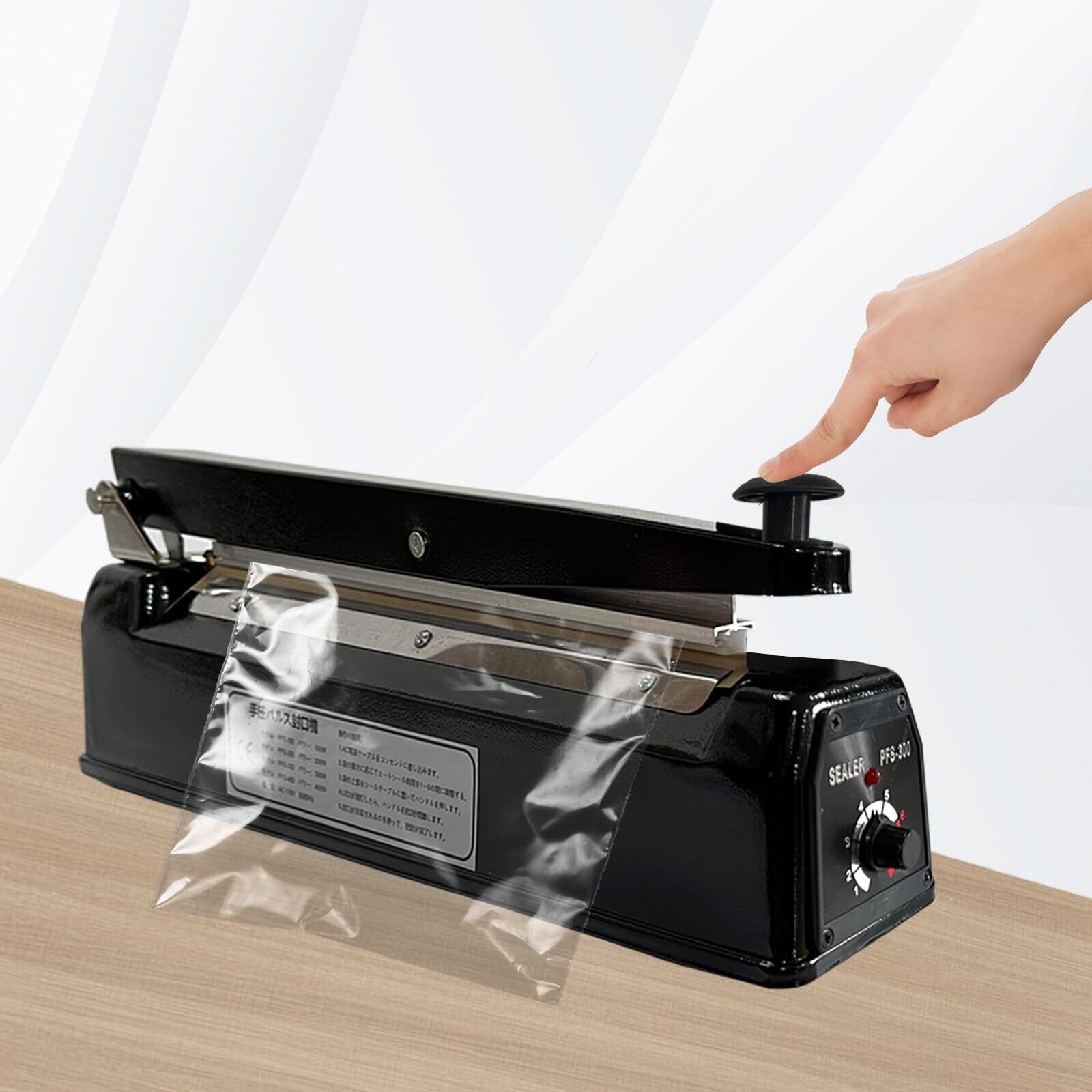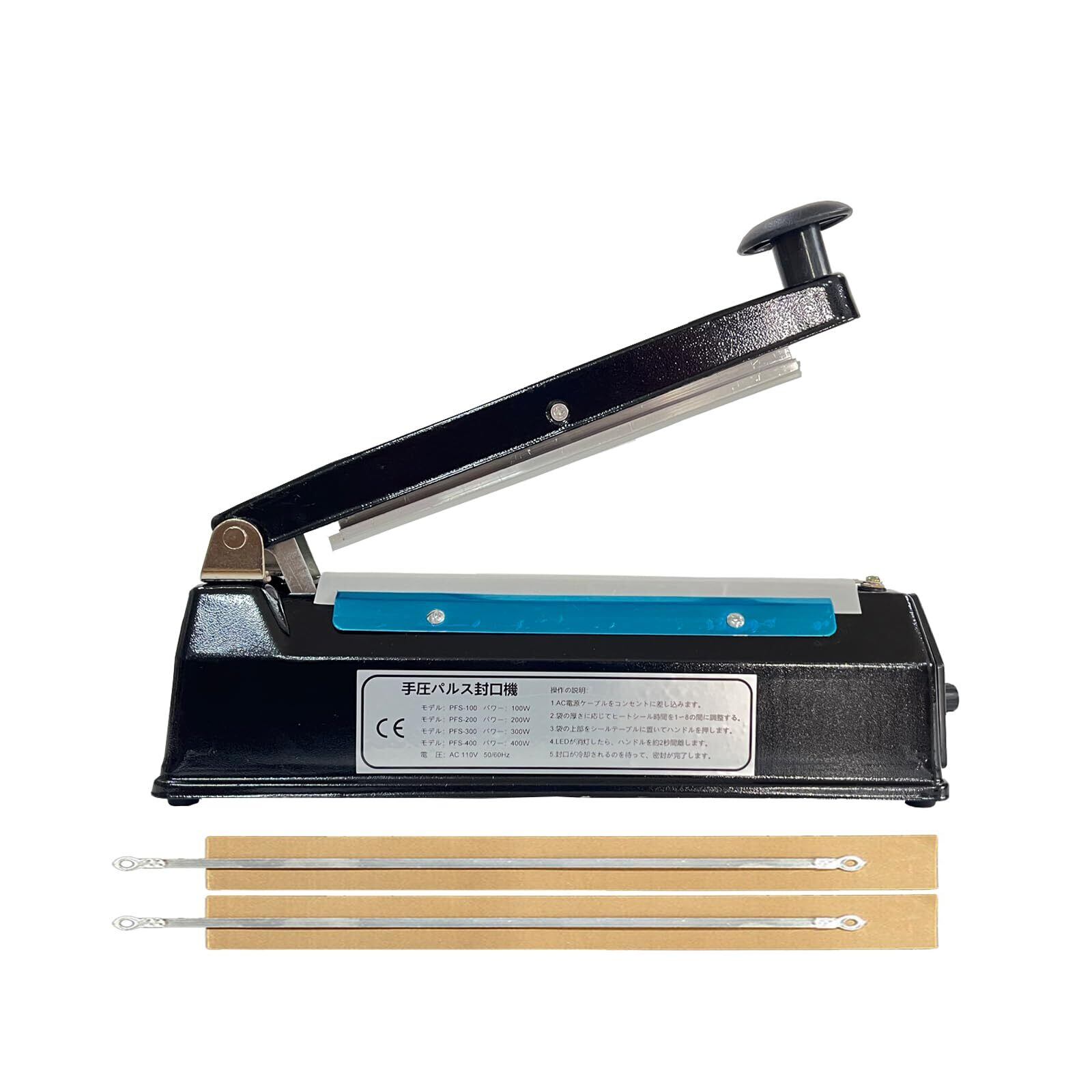 【製品仕様】ブラックメタルボディシーラー、プラスチックと比較して、より良い質感と耐久性、シールの長さ:200MM、シール幅:5MM、重量:1.20キロ、セットが含まれています:1本体、2スペア電熱キットとマニュアル1。