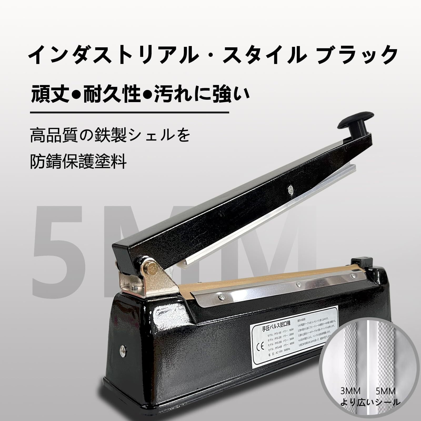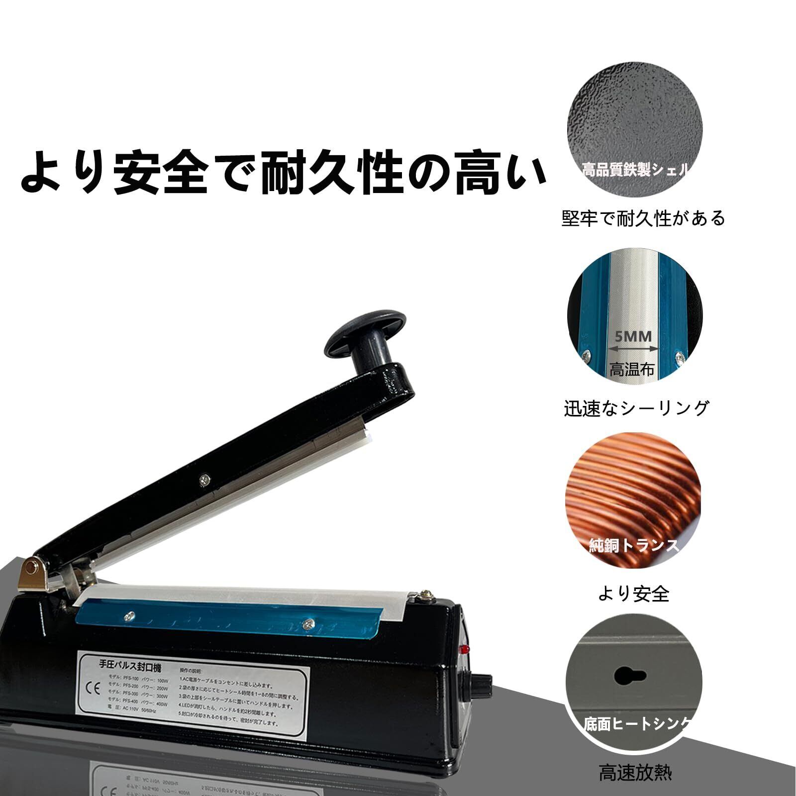 kilogorge シーラー シーラー 業務用 卓上シーラー ぜいたくブラック】 200MM長 手圧シーラー機 エクストラワイド5mm圧痕 インパルス シーラー 高性能シーラーん 様々な袋を密封できる 交換用ヒーター線付き*2 日本語取扱説明書付き(黒 5MMシリーズ)