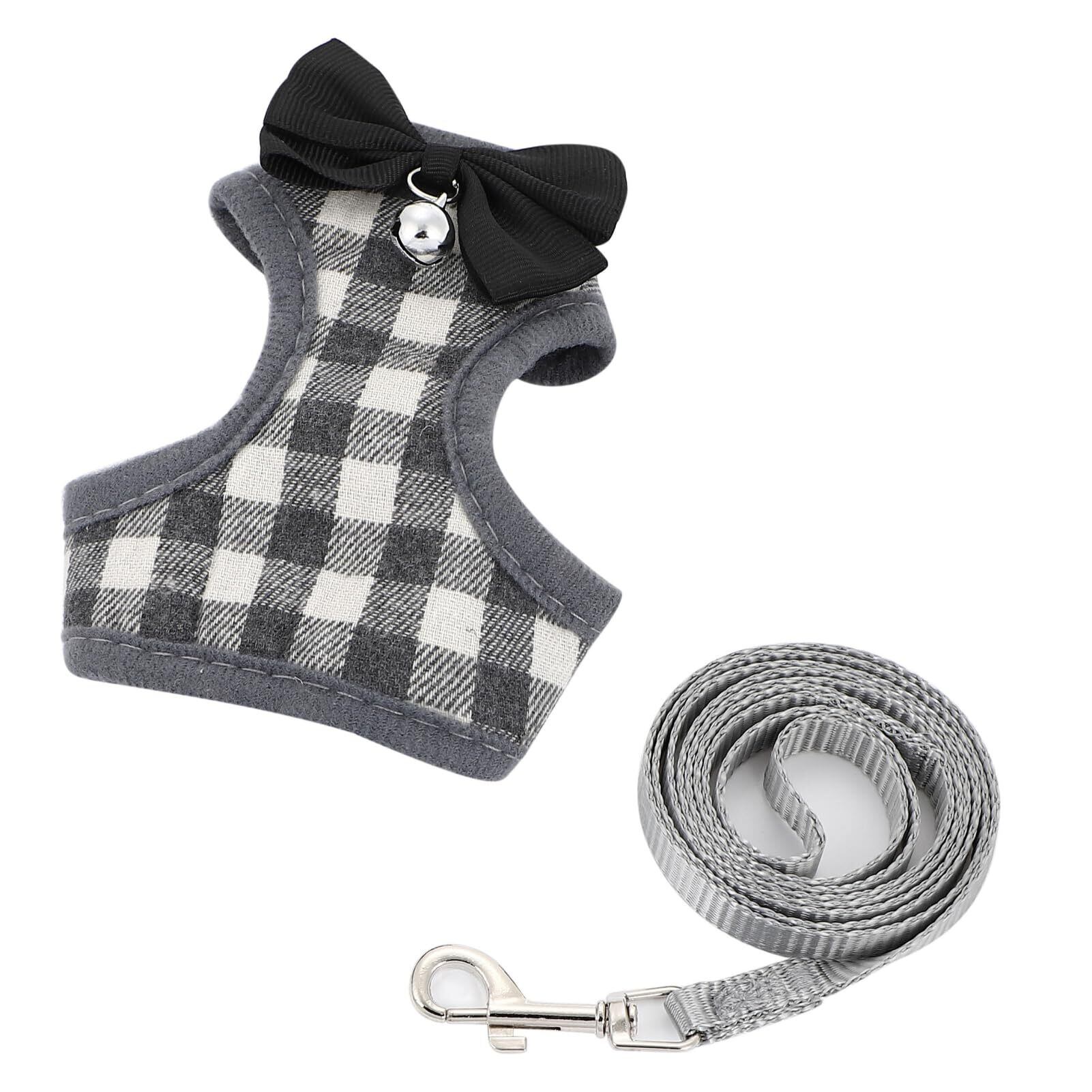Uccellino リボン うさぎ ハーネス 通気性 長さ調整可 リード 簡単装着 ウサギ用ハーネス (グレー(チェック))