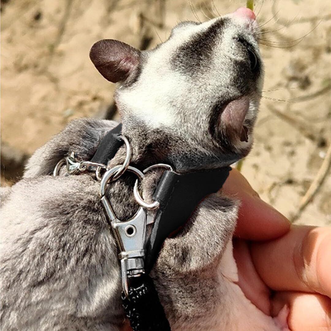 フクロモモンガ 牽引ロープ 小動物 モモンガ ハーネス リードセット ハムスター牽引ロープ 爬虫類 ハムスター お散歩 お出かけ用 簡単着脱 3サイズ 調節可能 モルモット テンジクネズミ お出かけ用 散歩用 (ブラック)