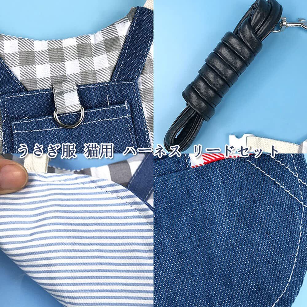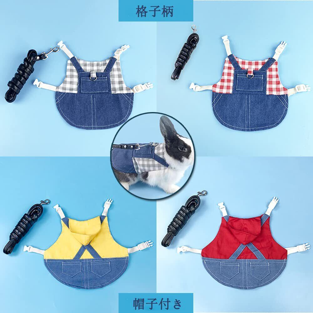 Hitasi 子猫 ハーネス リード セット 可愛い うさぎ服 デニム 格子 モルモット 子犬 小動物用 胸あて式 調整可能 着ぐるみ お散歩用リード お出かけ用品 迷子防止 牽引ロープ 矮小ウサギに最適 簡単着脱 記念撮影 仮装 ペット用品 M(1?2kgのウサギに最適) 赤-帽子付き