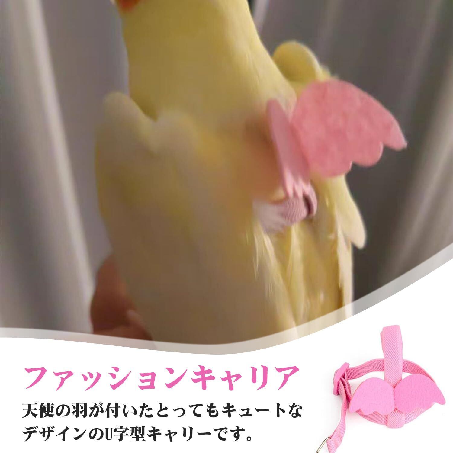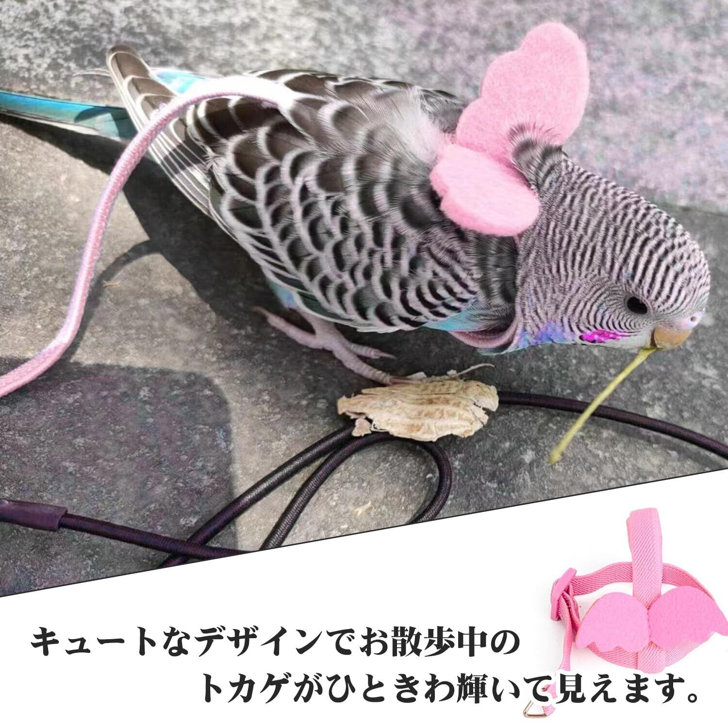 PAVIKE 鳥用ハーネス インコ専用リード ハーネスト 調節可能ロープ お散歩 迷子防止 運動不足対策 ウォーキング インコトレーニング縄 小動物用 お出かけ ピンク 天使の羽 可愛い 鳥用品