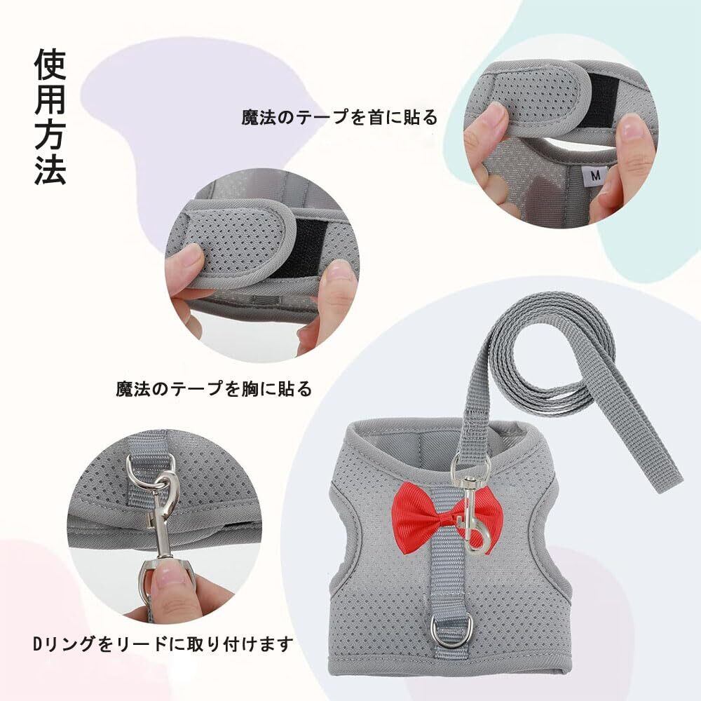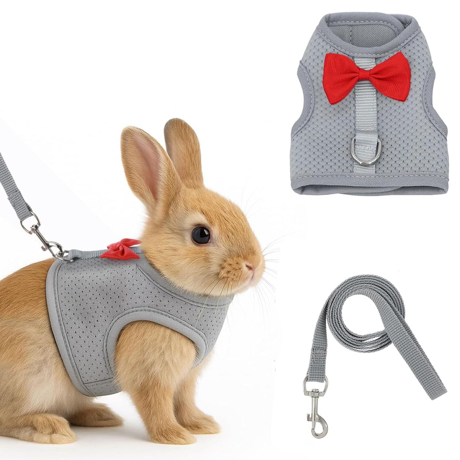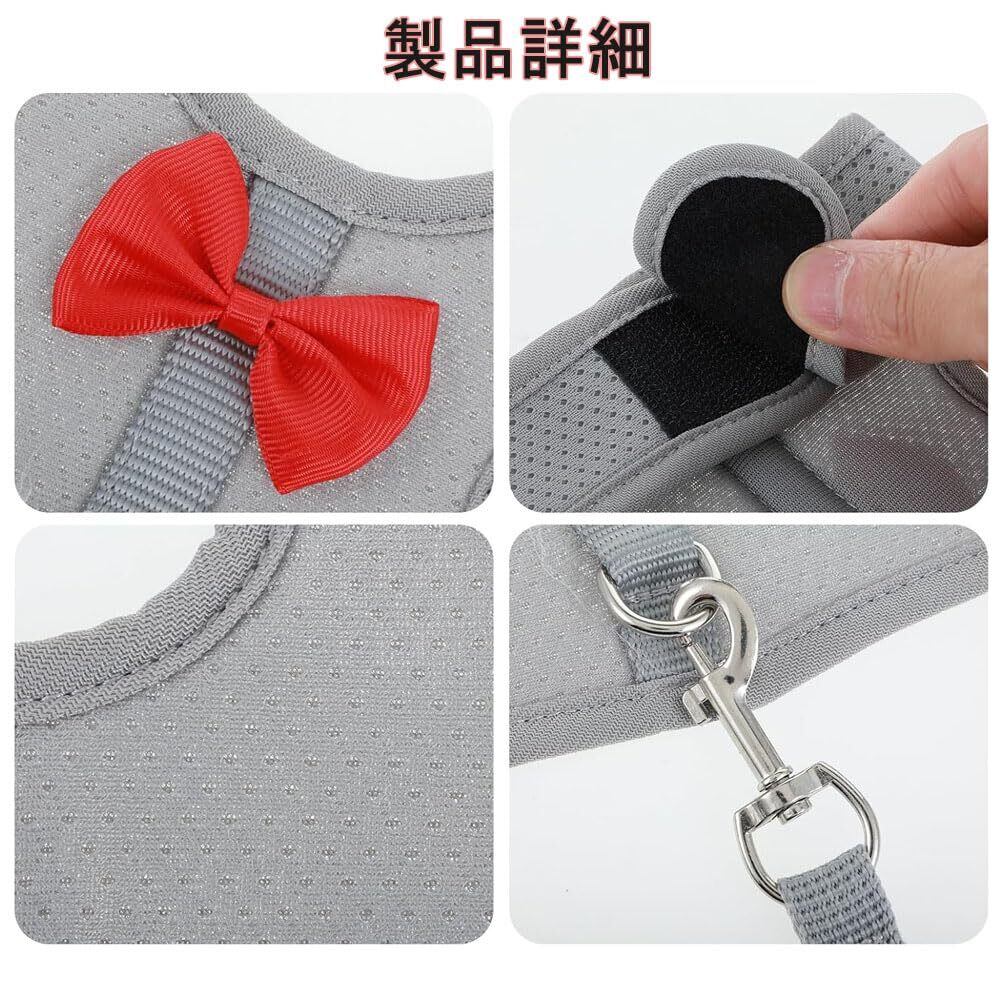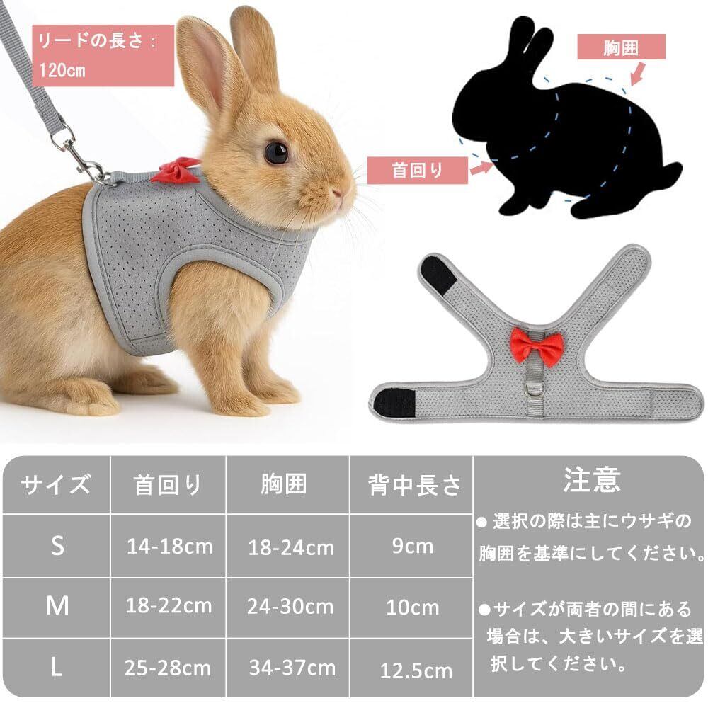 ウサギ 子猫 ハーネス リード セット 可愛い うさぎ服 通気性メッシュ 胸あて式 調整可能 着ぐるみ 簡単着脱 お散歩用リード 迷子防止 うさぎハーネス 牽引ロープ 運動不足を防ぐ 子犬 小動物用 記念撮影 仮装 ペット用品 (グレー M)