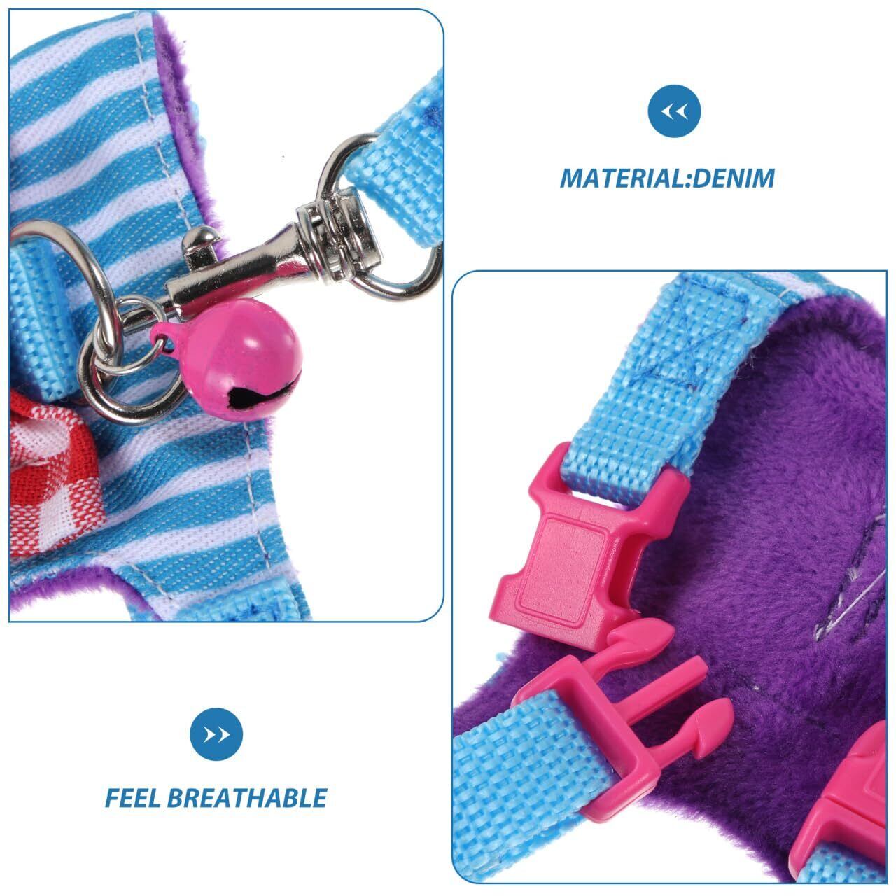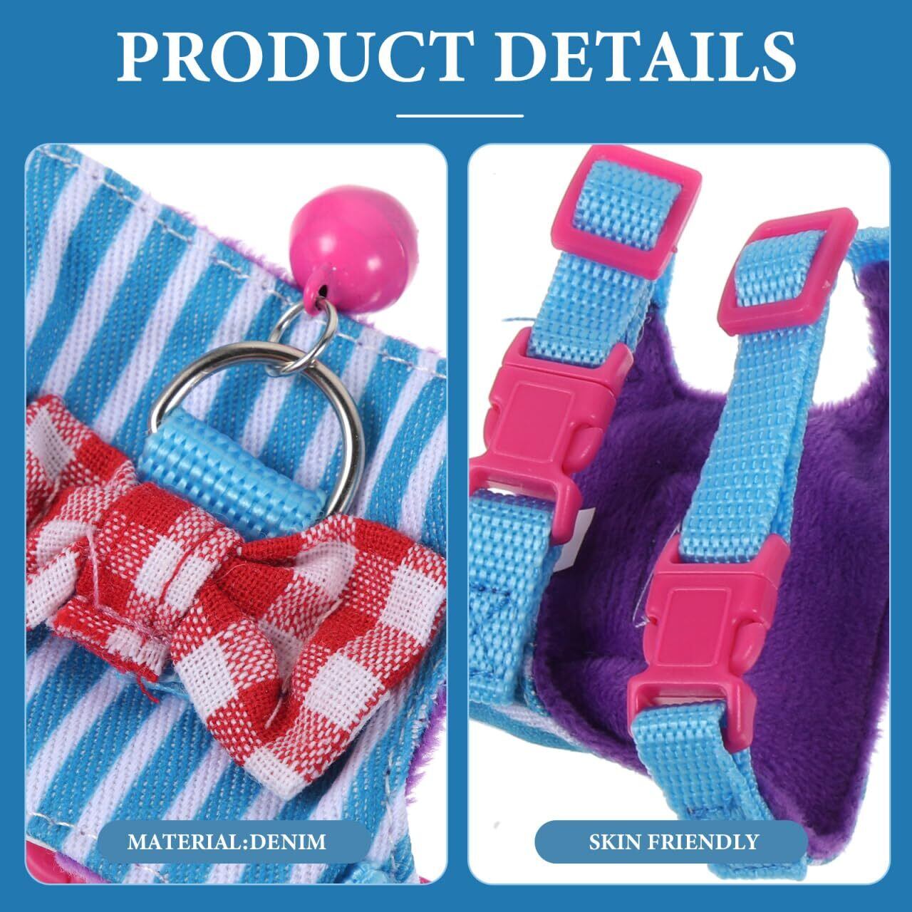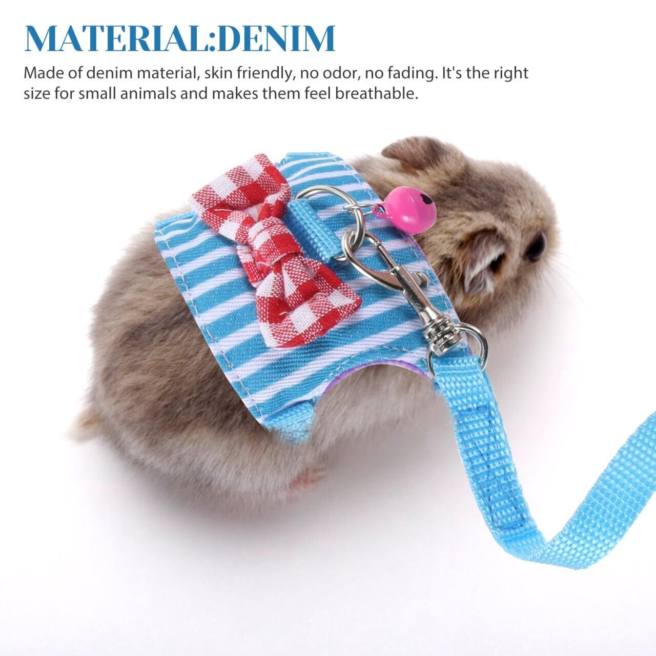 OATIPHO ハムスター用ハーネスとリーシュセット 小型ペット用ウサギ用デニム製リード ぴったりフィットの可愛い衣装 屋外用ハムスターリード お散歩用小動物服 1set