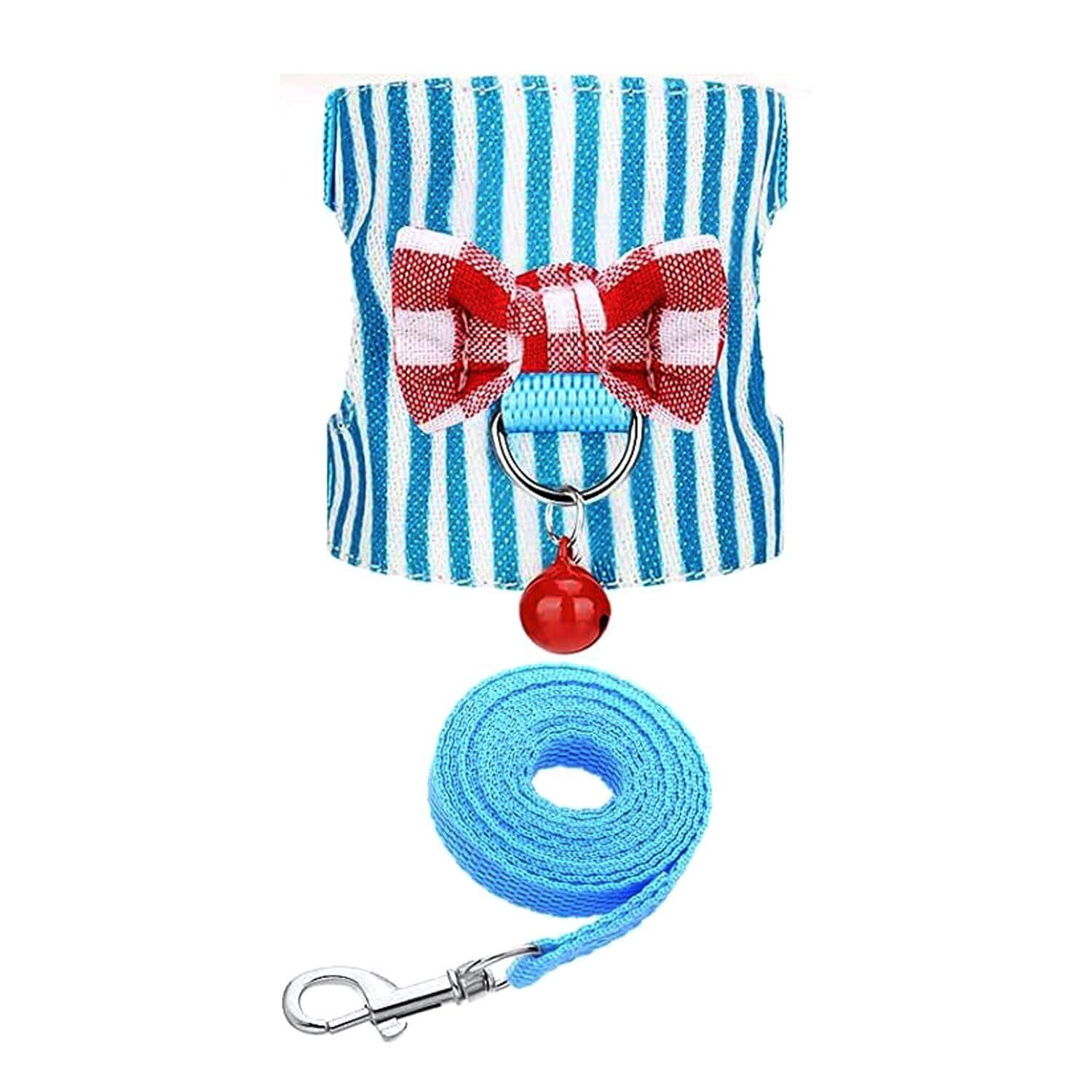 ハムスター お散歩用リード ハムスター リード小動物用ハーネス リード かわいい ハムスター リスハーネスリーシュ 小動物お出かけ用品 調節可能 お散歩 お出かけ用 ハーネスリード ペット牽引縄 牽引ロープ 胸あて式 小動物用 豚 リス 針鼠 迷子防止 おでかけ (ブルーストライプのMサイズです)