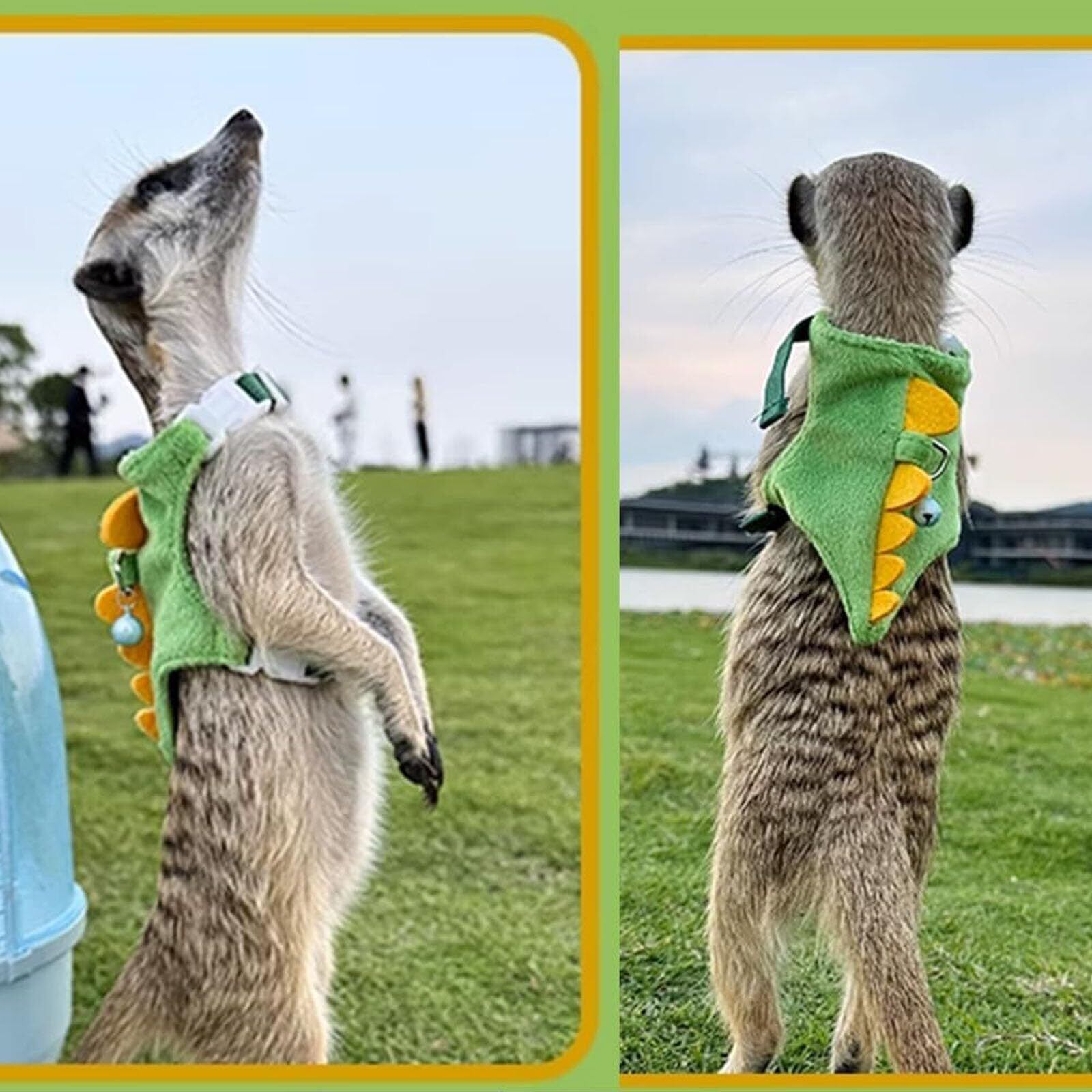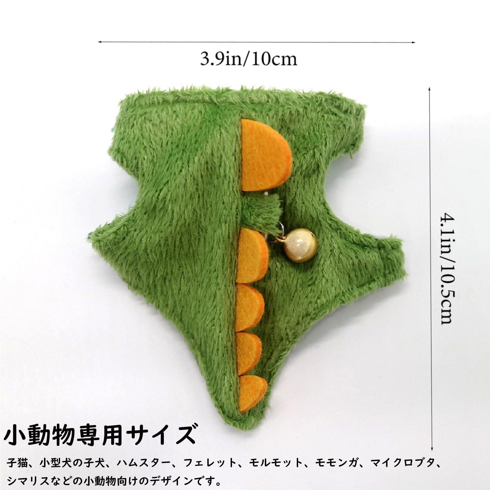 Refoiner 猫用ハーネス猫 リード 抜けないフェレット ハーネスウサギ ハーネス 牽引ロープハムスター 散歩 ベル付き可愛い恐竜の形 おしゃれ超小型犬 小型犬 ハーネス リードセット モルモット モモンガ ペット用品 装着簡単 初心者向け(グリーン)