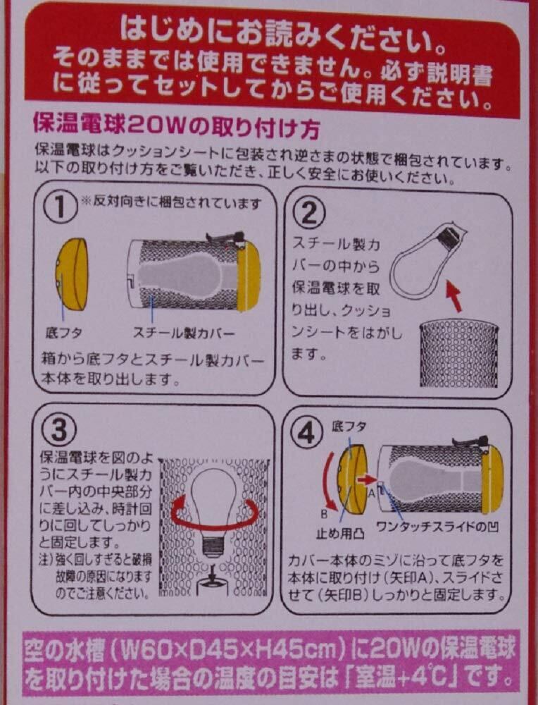 別売の保温電球20Wを交換用熱源としてご使用ください。
