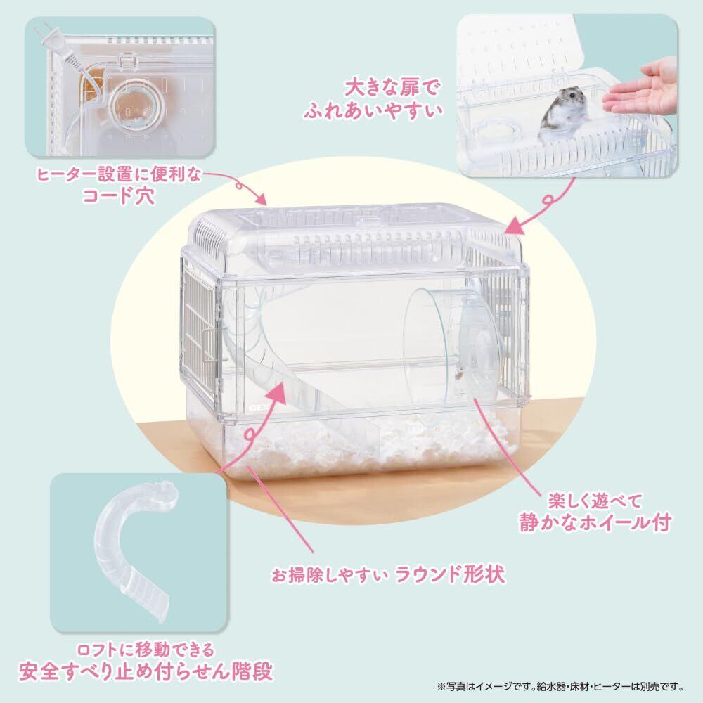 クリアでかわいい姿がよく見える! かわいいしぐさを見逃さない、前面オールクリアガラス仕様! ●ふれあいロフトでもっとなかよし ●とっても静かなホイール付 ●組み立て済みですぐに使える ●ジャンガリアンハムスターなどのドワーフハムスターにぴったりのサイズ ●大きな扉でふれあいやすい ●ヒーター設置に便利なコード穴 ●ロフトに移動できる安全すべり止め付らせん階段 ●楽しく遊べて静かなホイール付 ●お掃除しやすいラウンド形状 <組立時サイズ>約幅32.5×奥行21.5×高さ25.0cm <セット内容>ロフト付ガラスパネル、ロフト扉、側面扉、底トレイ、側面ワイヤー、ハーモニーホイール14、らせん階段