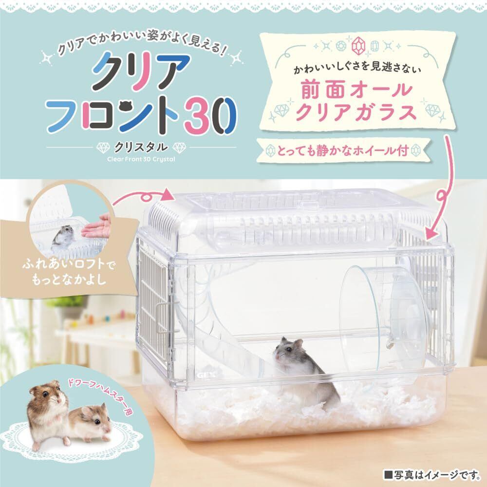 クリアフロント30 クリスタル 前面オールクリアガラス ジャンガリアンハムスター用 飼育セット 静音ホイール付き W32.5×D21.5×H25cm