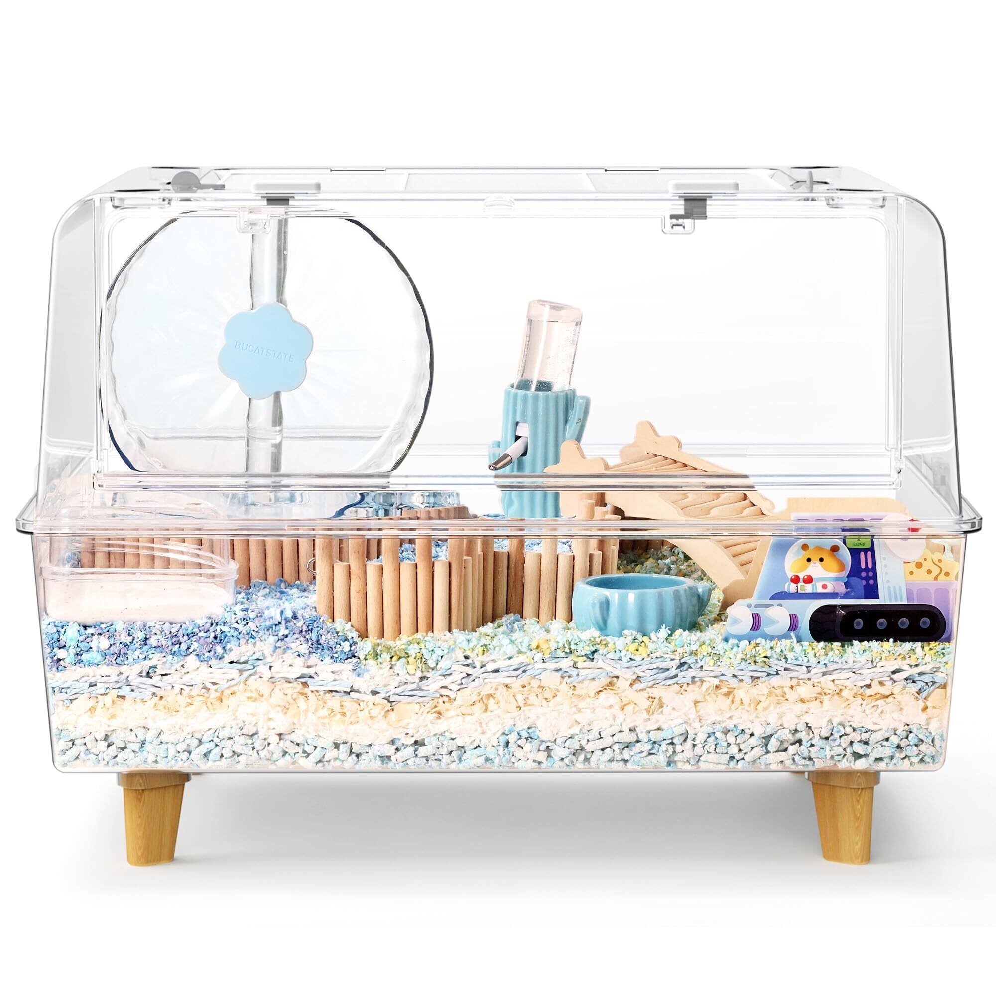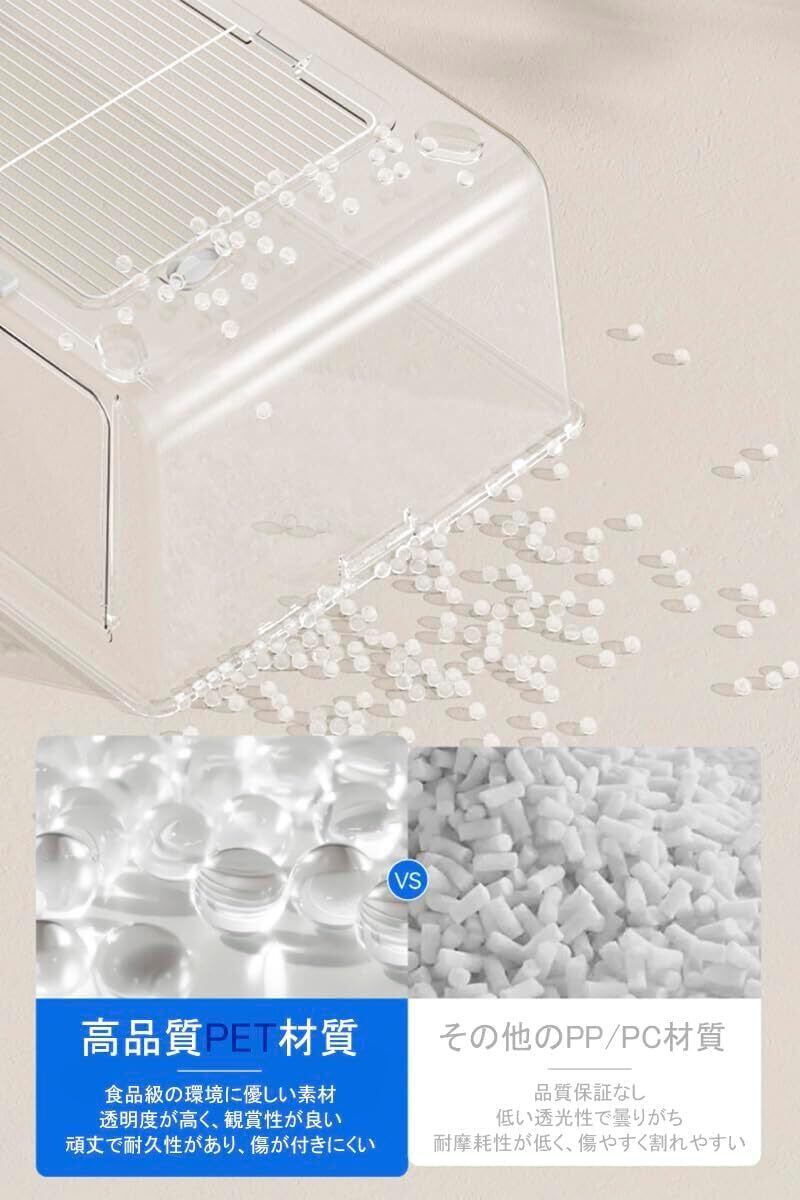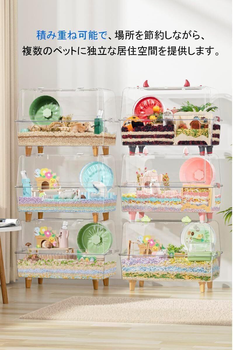 【透明度アップ 全面クリアケージ】高品質なPS材質を採用したオールクリアカラーのハムスター ケージは、ハムスターの様子がよく見え、シンプルなデザインでインテリアにも馴染みやすく、S N S用の写真にもぴったりです。