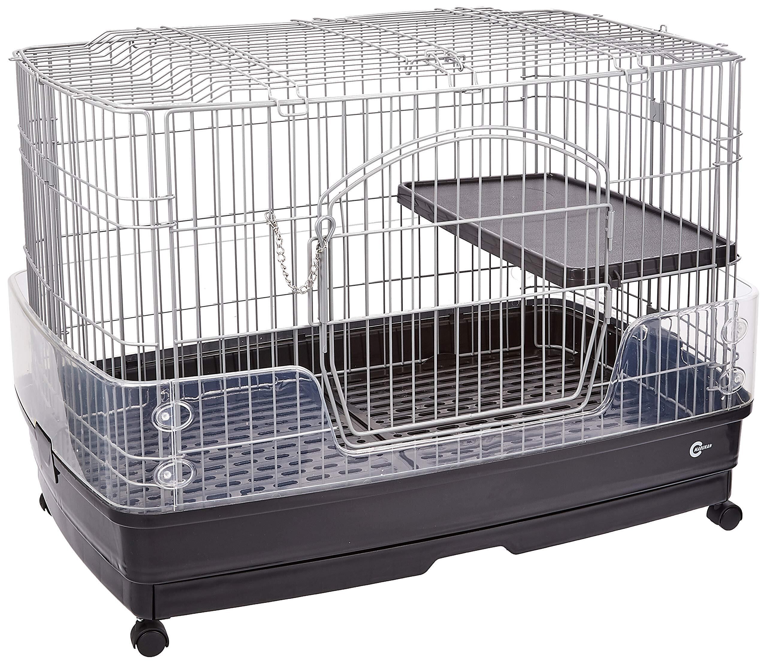 使いやすいゆったりサイズのケージ。引き出し付きなのでお掃除ラクラク。クリアカバーが付いてるのでおしっこの飛び散りを防ぎ、ケージ周りのお掃除が簡単。スペースを有効に活用できるハンギングトレイ付き。 プラスチックすのこ付き。