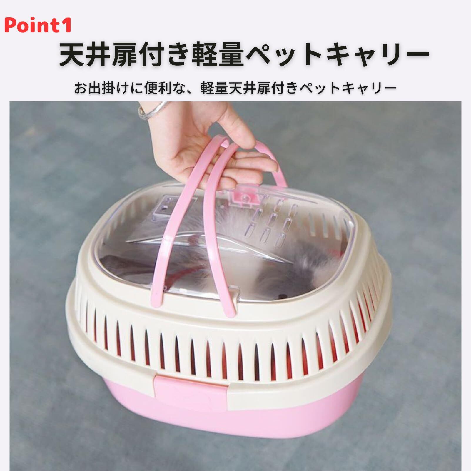 【出し入れ簡単な天井扉】天井に開閉式の扉付きで、ペットをスムーズに出し入れ可能。軽量設計で女性や子供でも持ち運びラクラク。