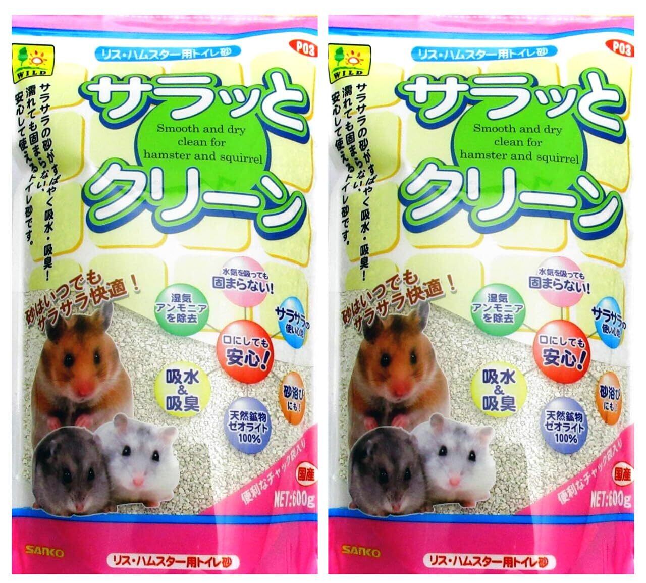 セット内容:三晃商会のリス・ハムスター用トイレ砂「サラッとクリーン(600g)」を2袋。砂が濡れても固まらない、いつでもサラサラ快適が特長です。