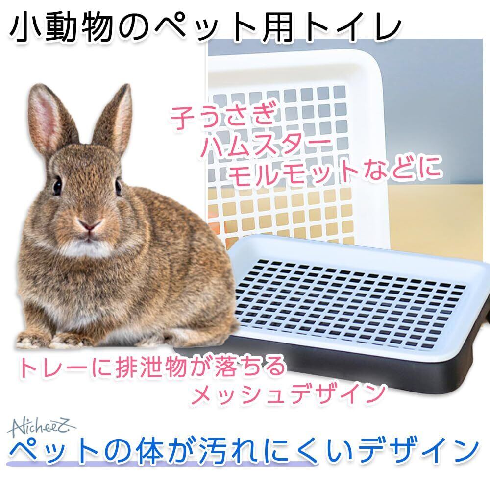 【小動物の飼育に】うさぎやハムスター・モルモットなど、小動物のペット用トイレです。四角のメッシュデザインでトレーに排泄物が落ち、ペットの体が汚れにくいデザインです。選べる2カラー。