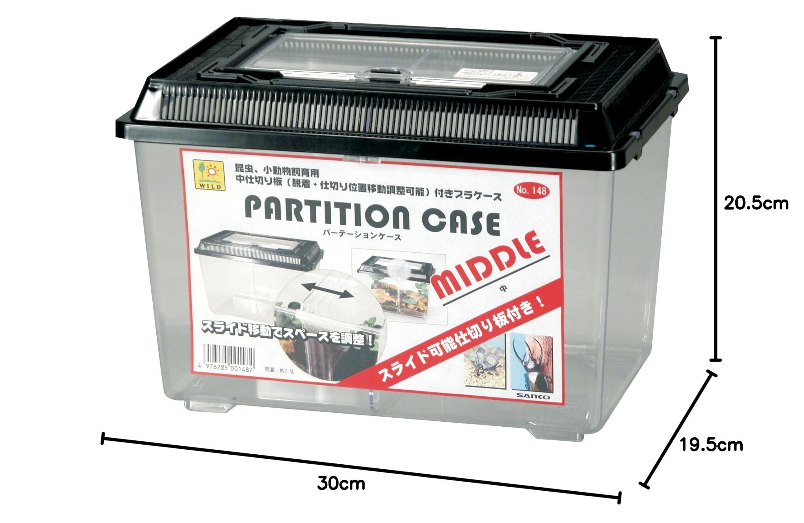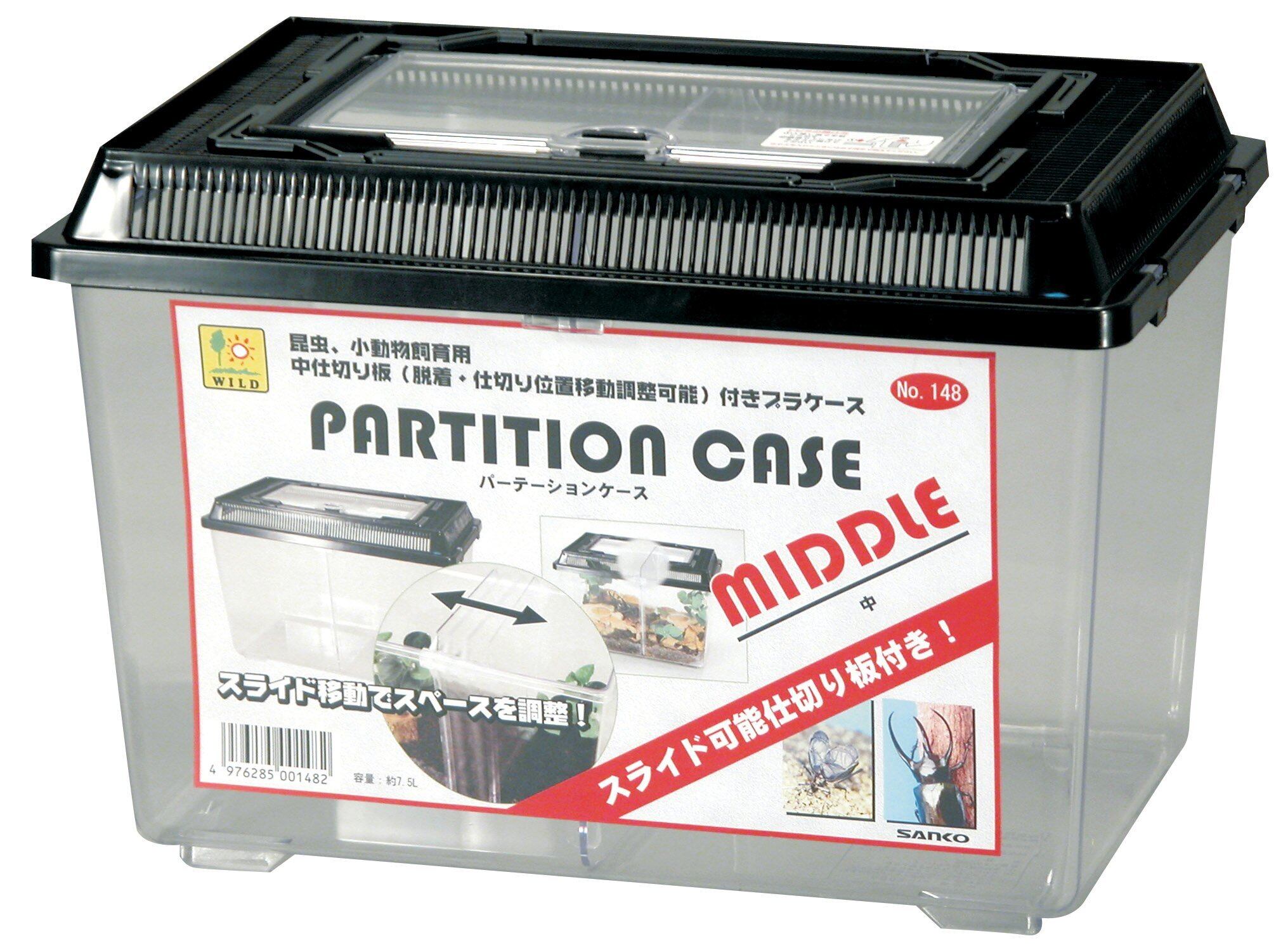 スライド移動でスペースを調節できる仕切り板付飼育ケース