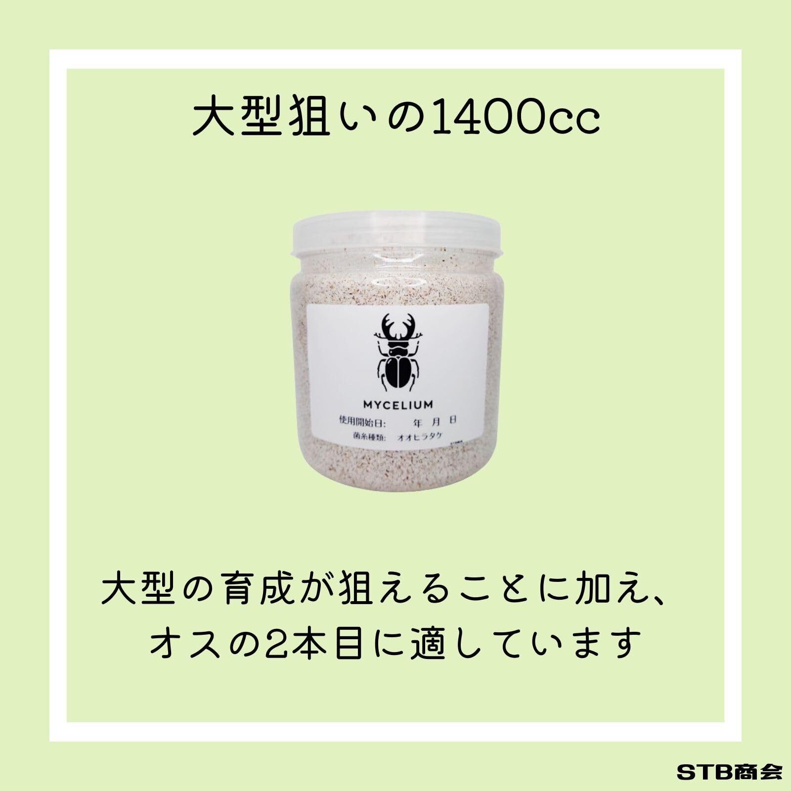 MYCELIUM 菌糸ビン1400cc オオヒラタケ菌 ホワイト 二次発菌 クワガタ幼虫用 中型種~大型種(9.5cm以上) 劣化しづらい クリアボトル 観察可能 通気フィルター 初心者向け 日本製