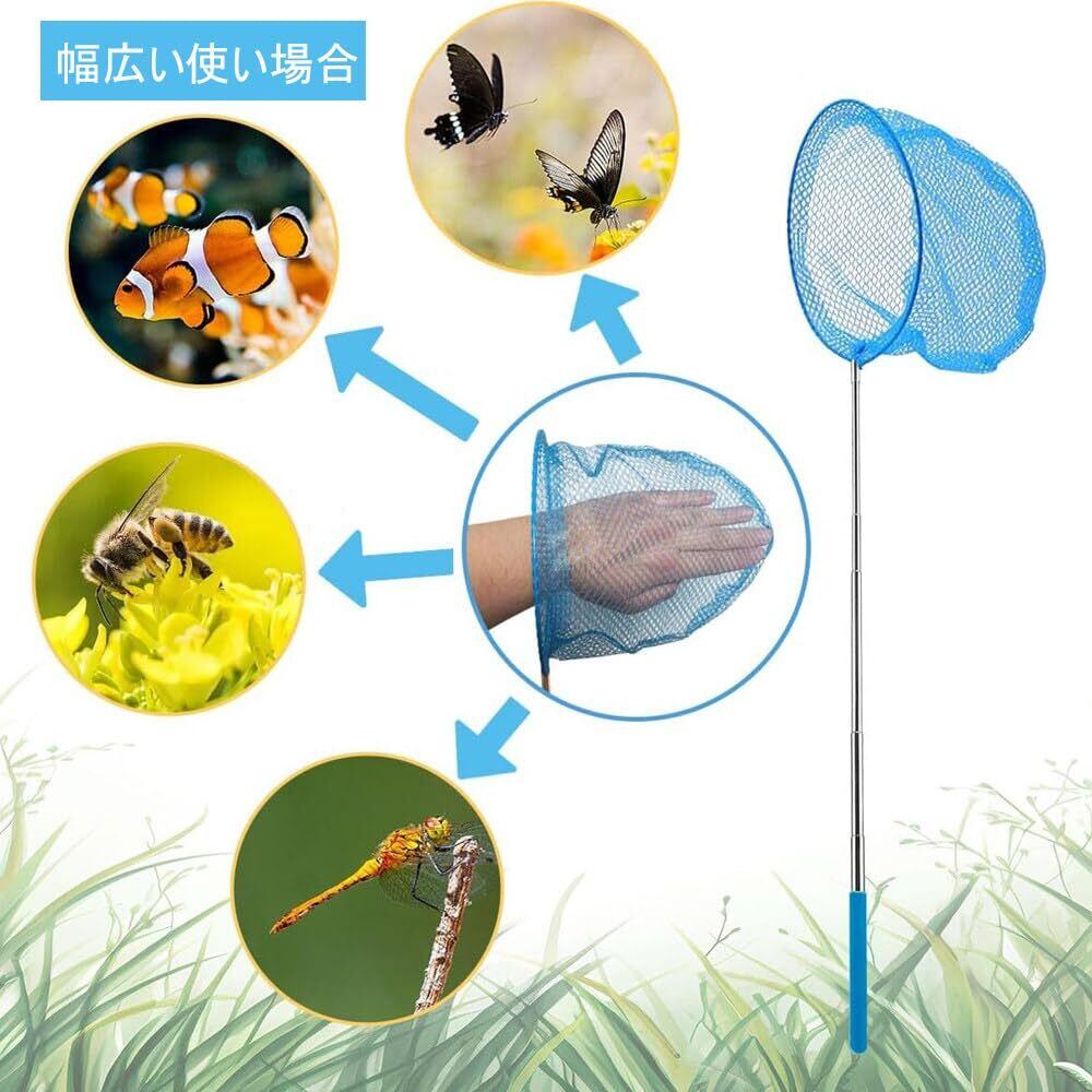 【幅広い用途】山、森、川、公園など様々な場所でお使い頂けます。水陸両用可能で、昆虫取りの網と魚取りの網として使えられます。