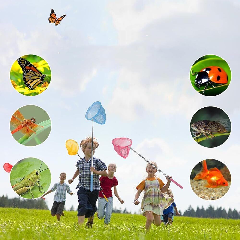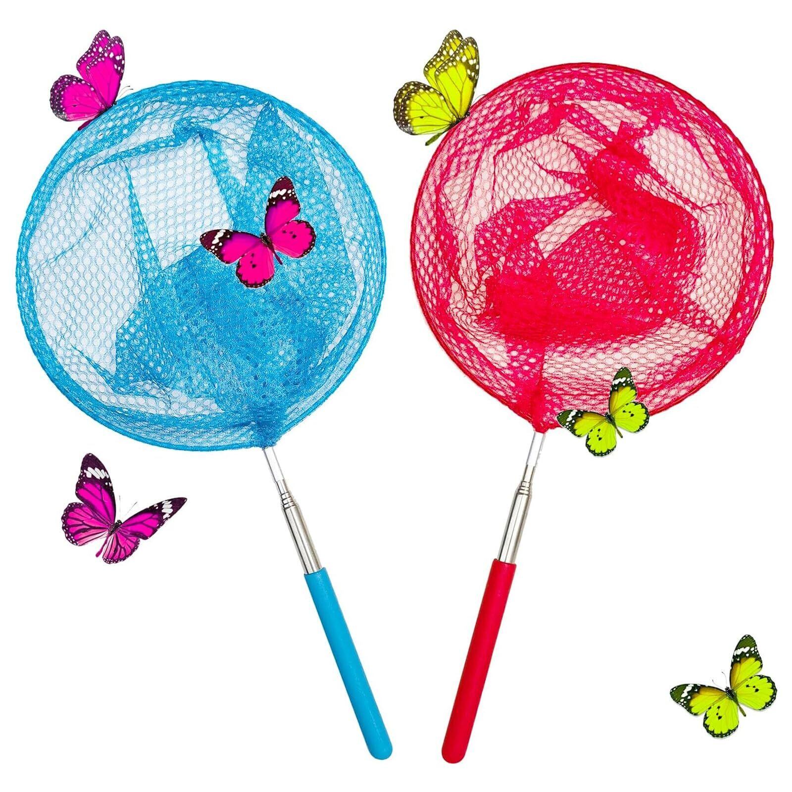 虫取り網 2色 2本入り 魚取り網 昆虫ネット 軽量 調節可能 5段伸縮 昆虫採集 水陸両用網 子供用虫取りアミ 屋外ツール トンボ 蝶 小魚の捕獲に適しています (ブルー+レッド)