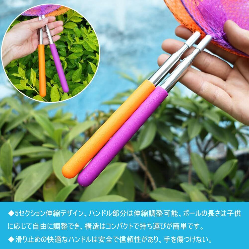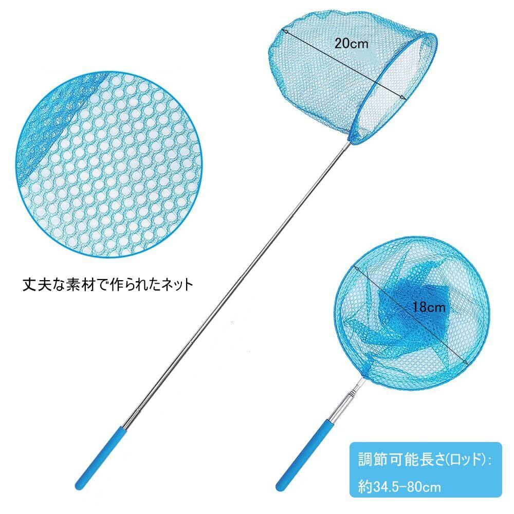 【商品仕様】セット内容:虫取り網2枚セットです、サイズ:最短時長さ:34.5cm;最大時長さ:80cm;網直径:18cm。