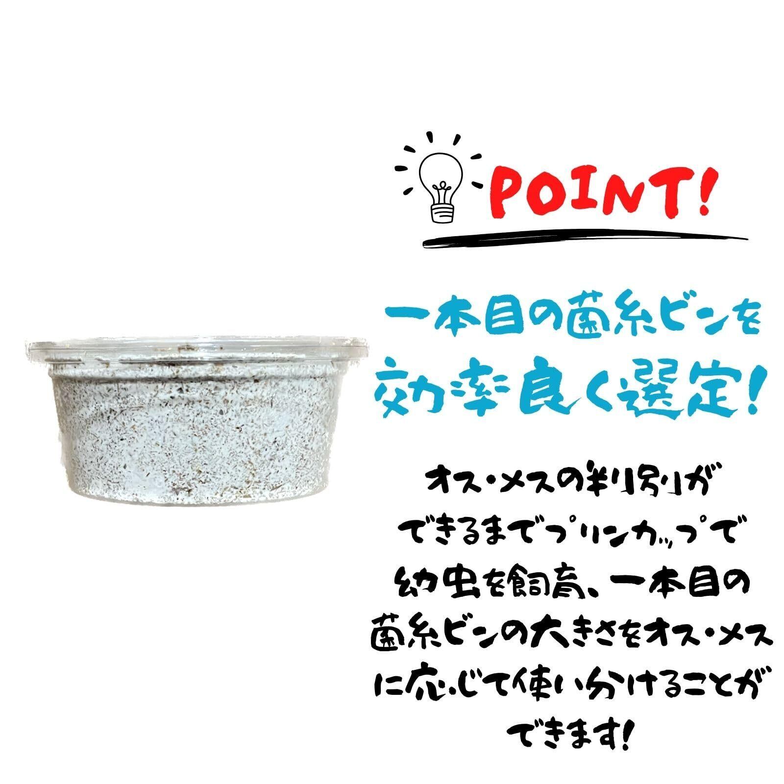 特長①:オオヒラタケ菌は、虫の育ち・菌糸の持ち・どれを取っても優れてます。非常に扱いやすい菌糸で初心者にも簡単です。また、透明なプラスチックボトルを使用しているので、(入れ替えのタイミングを一目で確認出来るからロスが無い)使用後の成虫管理にも便利です。