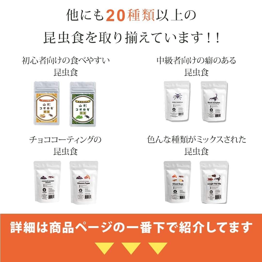 昆虫食は甲殻類(エビ・カニ)と類似した成分が含まれます。アレルギーをお持ちの方はお控えください。