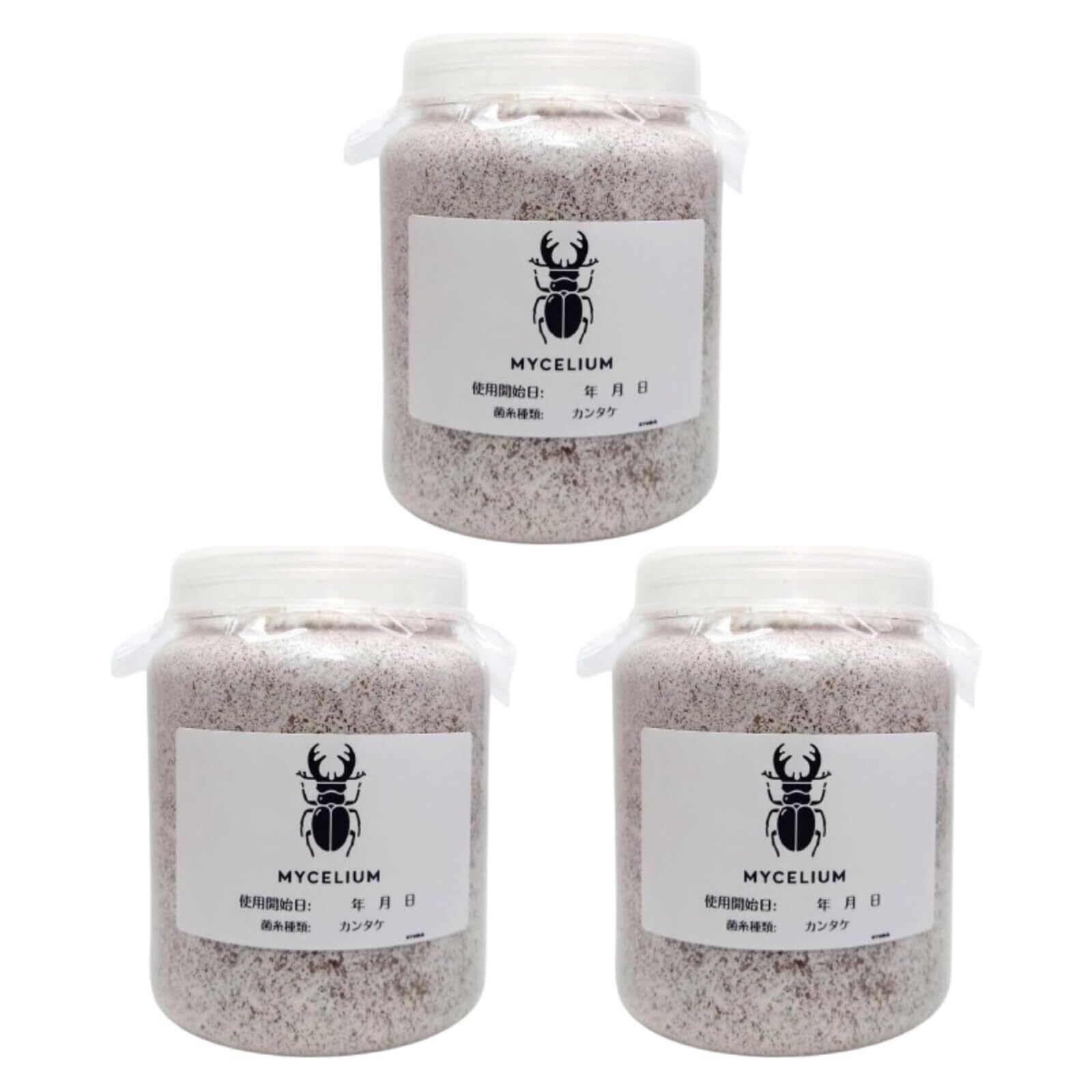 【3個セット】MYCELIUM 菌糸ビン800cc 寒茸(カンタケ)菌 ホワイト 二次発菌 クワガタ幼虫用 小型種~中型種(7.5cm以上) 劣化しづらい クリアボトル 観察可能 通気フィルター 初心者向け 日本製