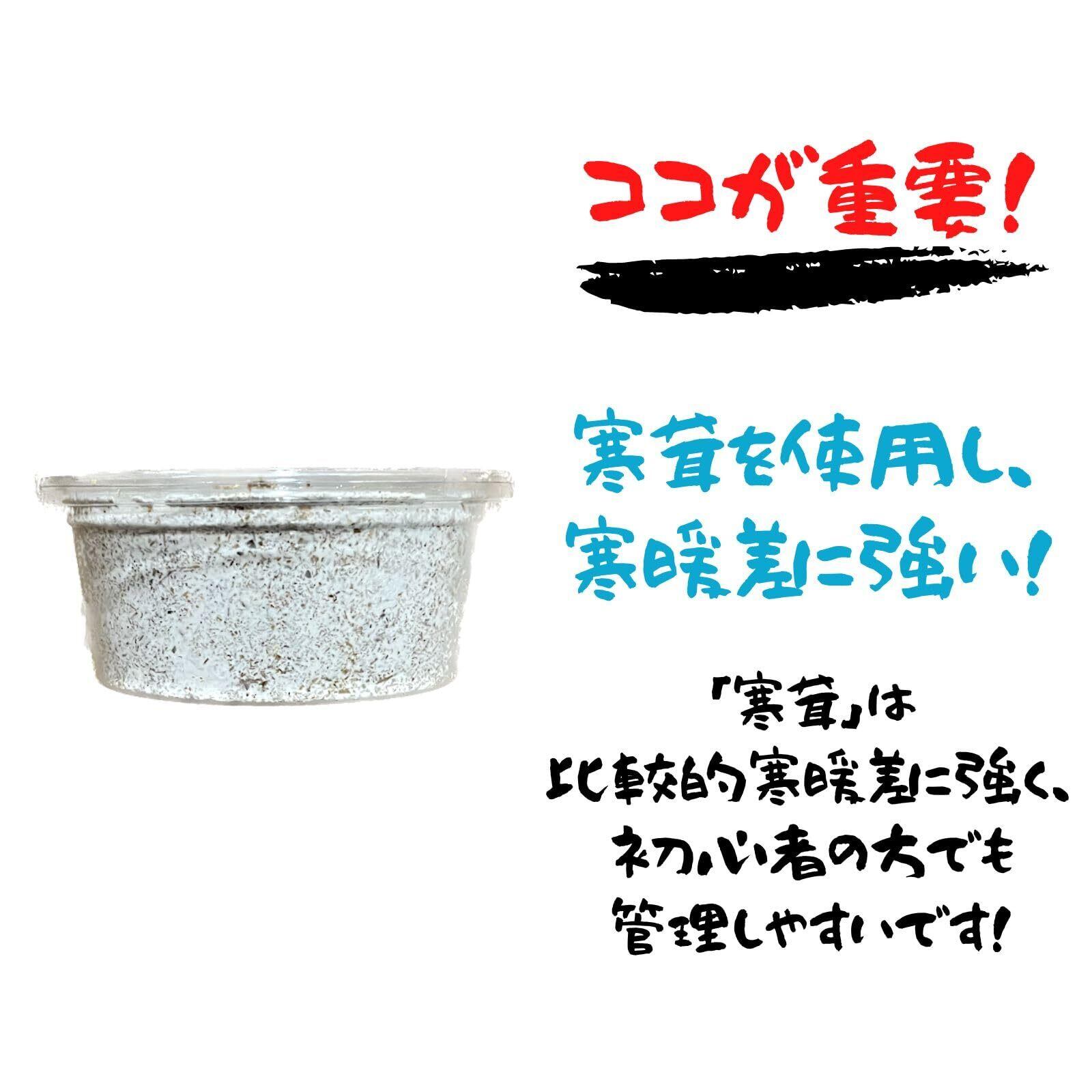 特長②:寒茸は菌が非常に強いので、超固詰めにより居食いが可能です。瓶交換の頻度を減らし、生体への影響を最小限に抑える事ができます