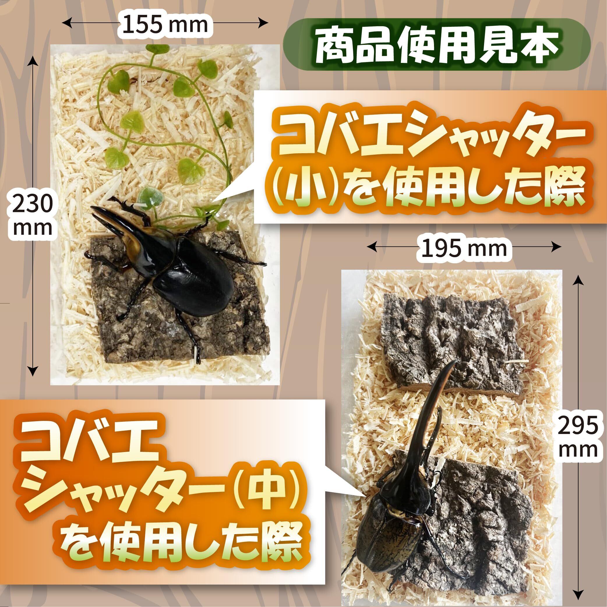 ︎内容量とsize ・商品1つに対して2枚 ・size縦6.5〜7㎝横8.5〜9㎝厚さ1.5〜2.5㎝ 〜使用シーン〜 通常の飼育時の隠れ家として ペアリング時の足場として 産卵セットの台材としても活躍! よく使用される飼育ケースや飼育ボトル(1400cc)に合わせやすいように、約6.5〜7cm×8.5〜9cm、四角くカット済み。無加工の天然樹皮なので、昆虫たちのどの飼育タイミングでも安心して使用できます。