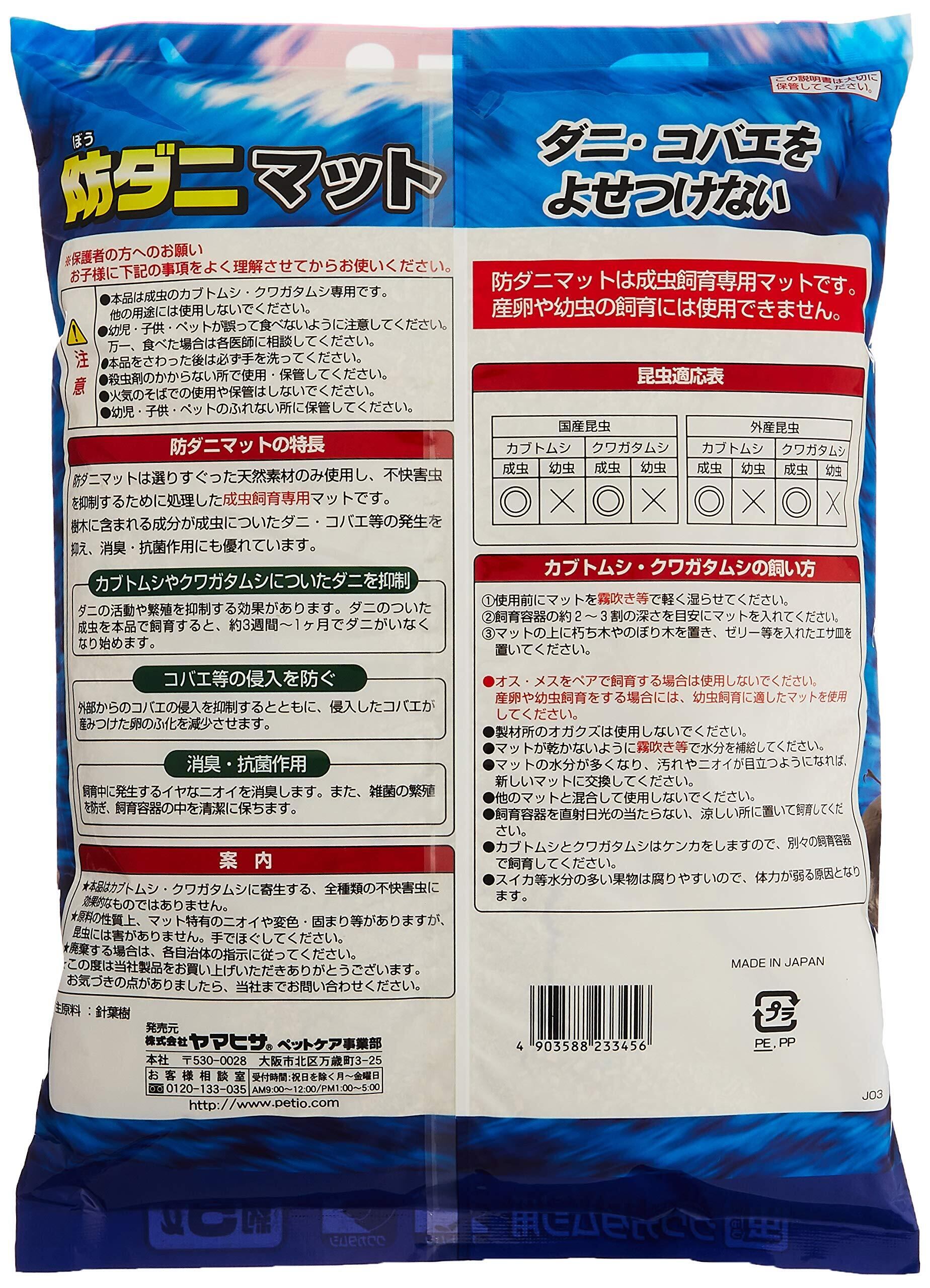 針葉樹を配合し、特殊処理を施したダニ・小バエ対策の成虫飼育専用マット。樹木の天然成分が小バエの発生を抑え、消臭抗菌作用にも優れています。特殊加工によりダニ・小バエが嫌がる程度の天然成分は残っていますが、カブト虫やクワガタ虫の成虫には影響はありません。