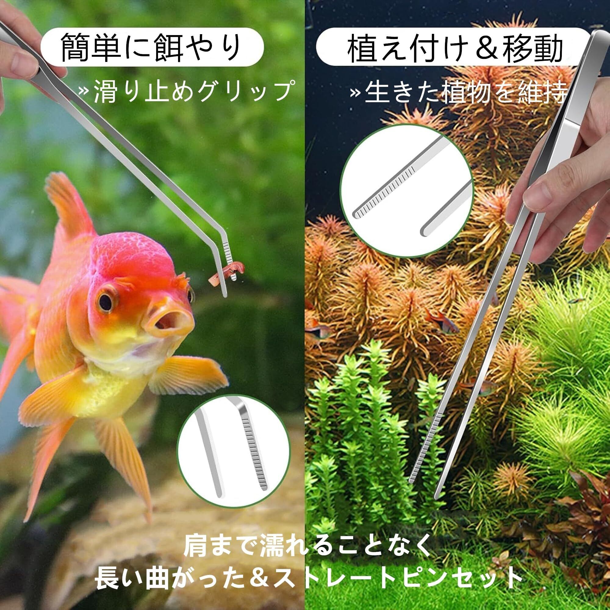 【高品質素材】高品質のステンレス鋼を使用しており、作りがしっかりしていて耐久性があり、長期間にご使用することができます。使いやすくて非常に便利です精密ピンセットは特別なストレートとカーブ設計を持っていて使い分けができ、細かくて長くて細かい作業に最適です。特に先は滑り止め設計を持つ一方、しっかり合わさっています。ピンセットは細かくて長くて細かい作業に最適です。滑り止め設計になっており、茎の細い水草やコケ類の処理に便利です。また、鉢植えなどの小園芸にもお使えます。