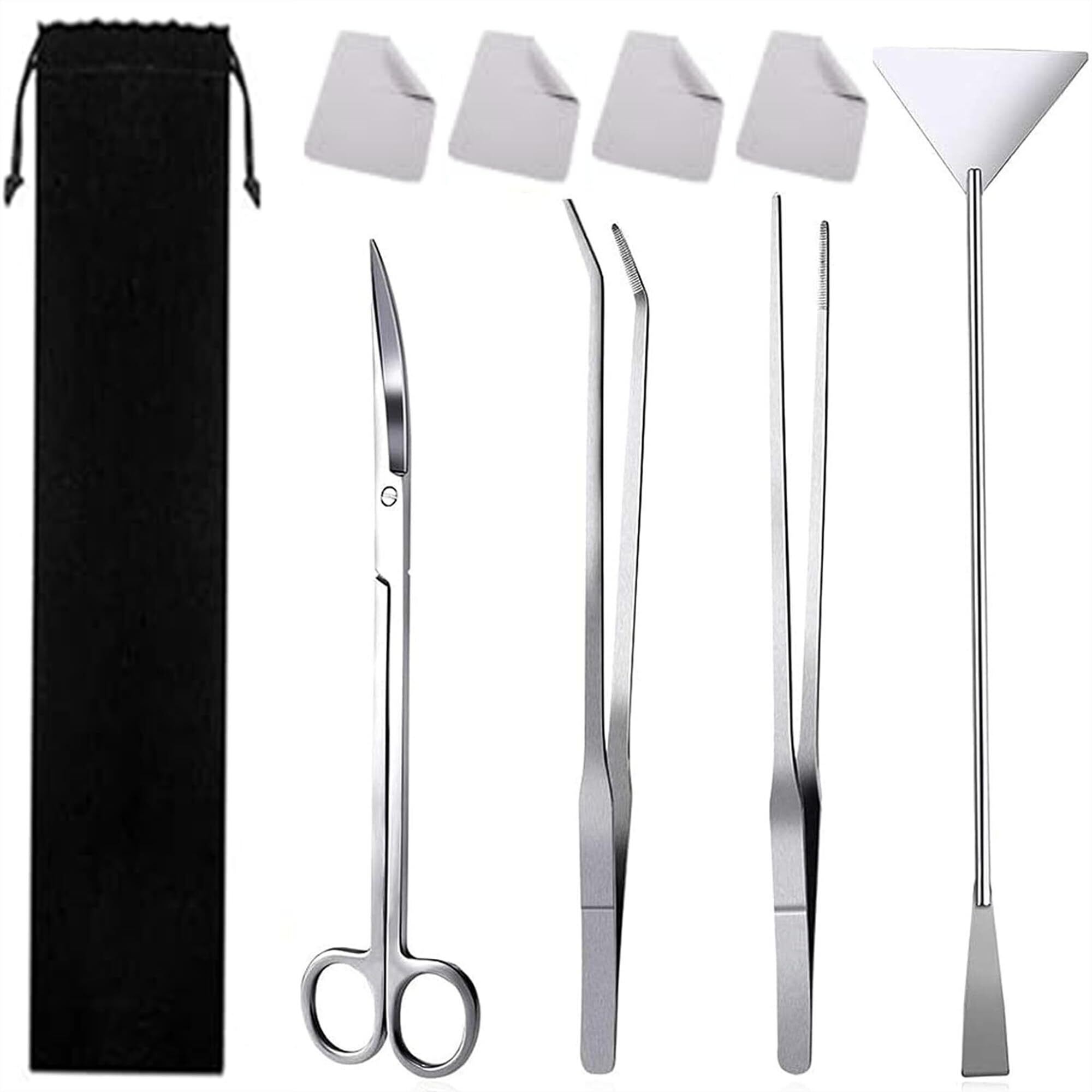 Yヤクニタツ 4点セット 水槽ピンセット 水草トリミング ハサミ ステンレス 水族館用 実用 便利 多機能 収納バッグと清潔布4枚付き