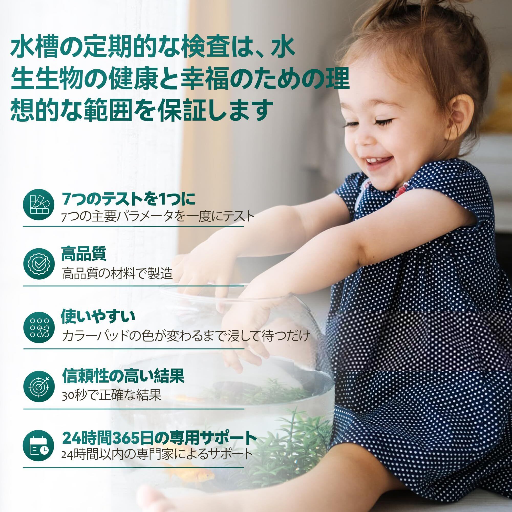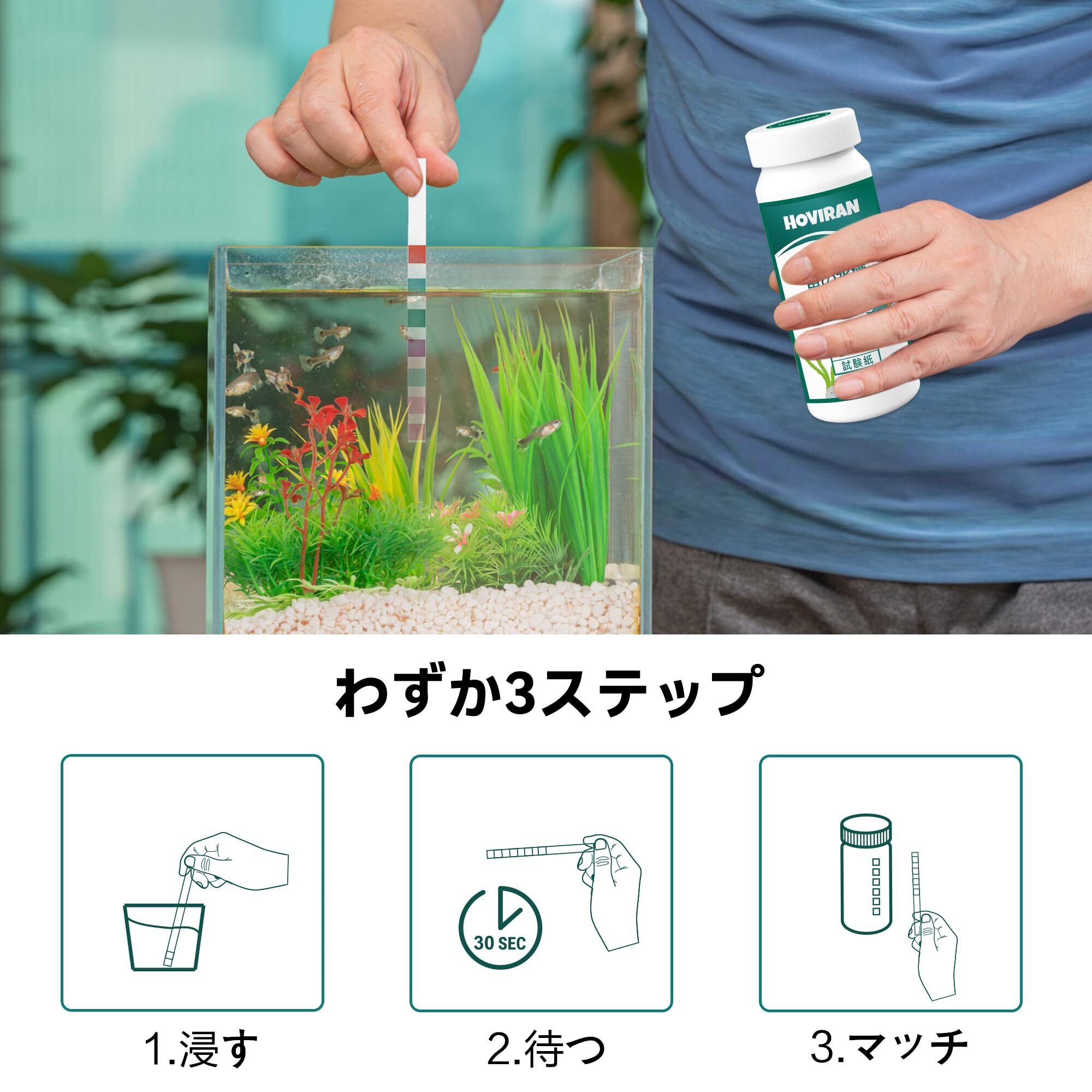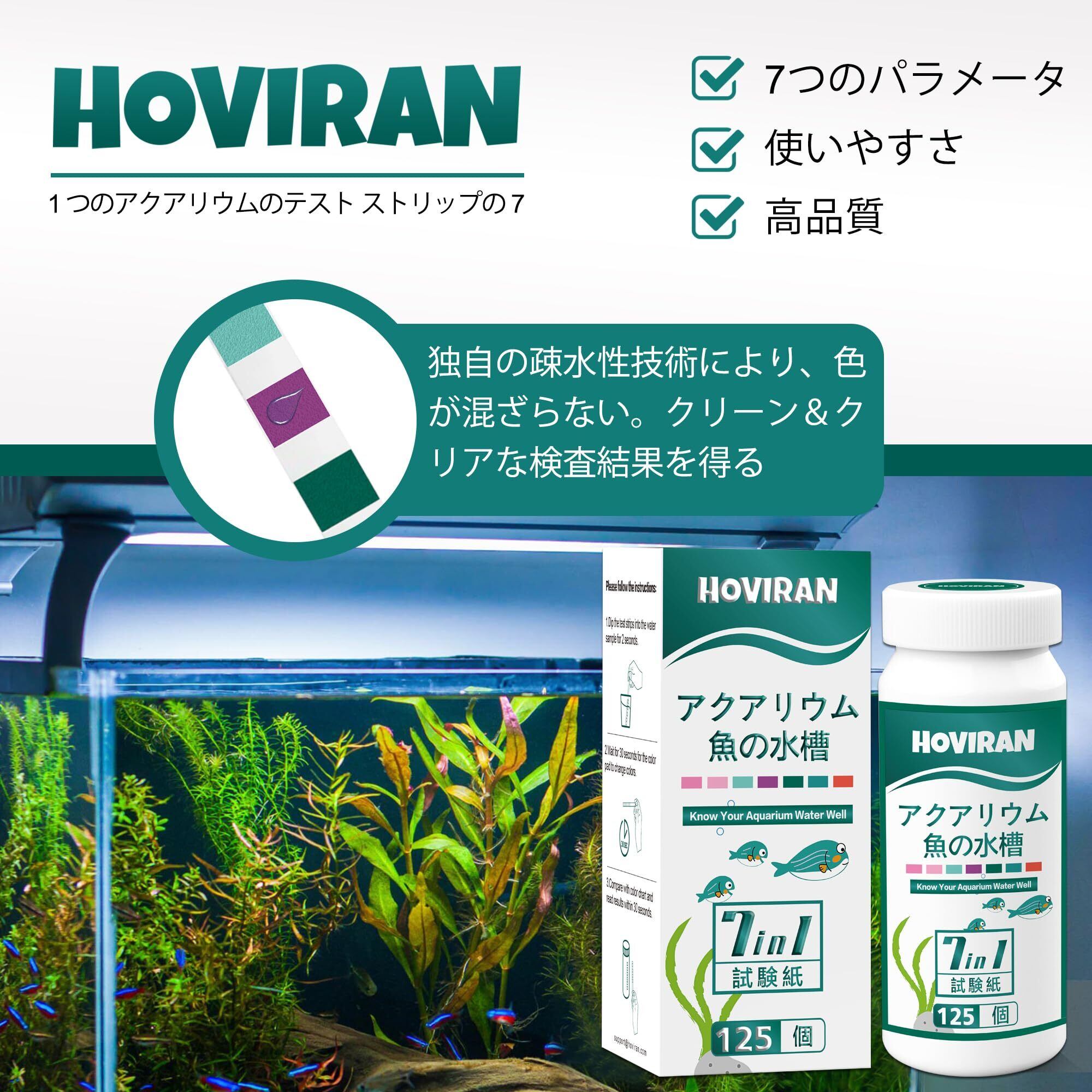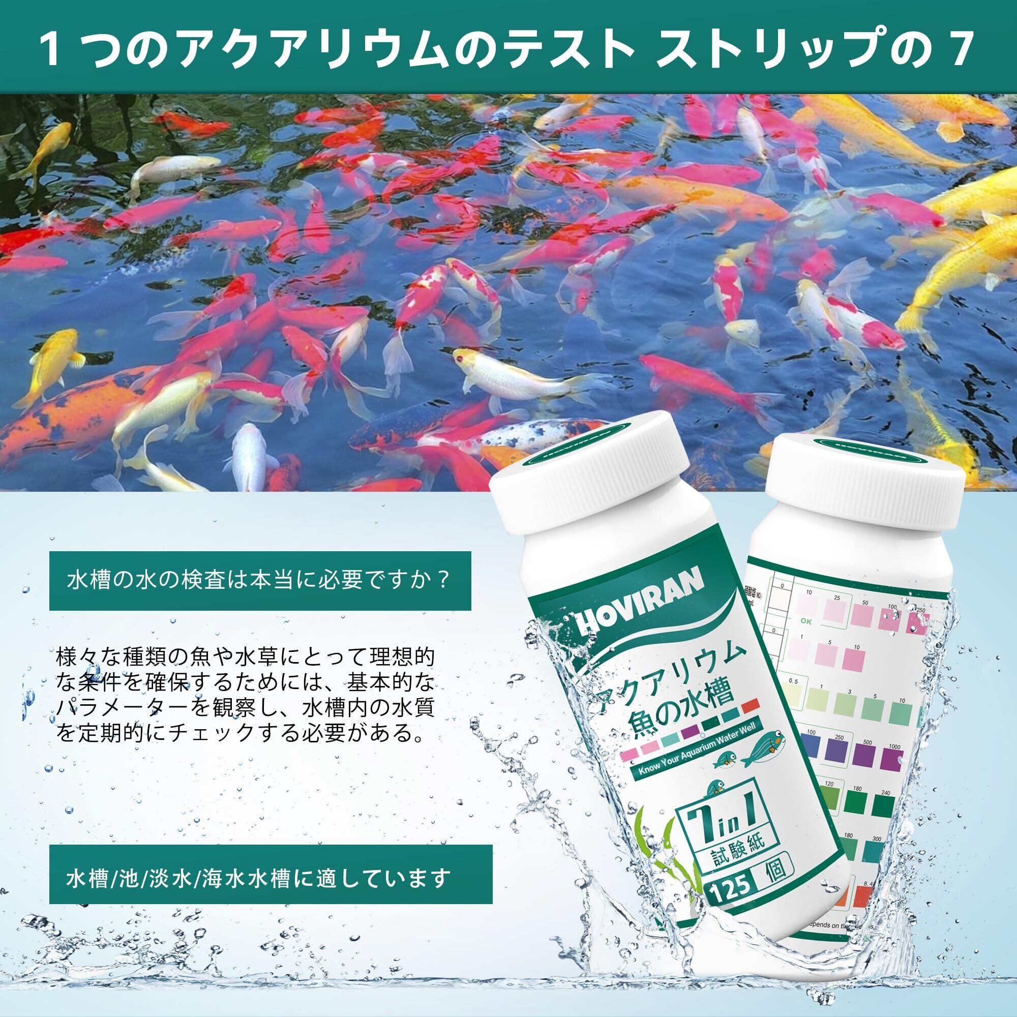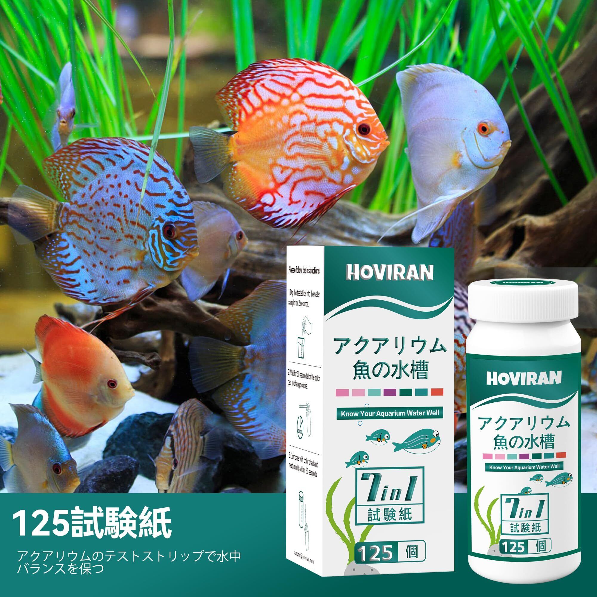 HOVIRAN アクアリウム 水槽 7 in 1 金魚 水質検査キット試験紙、塩素、総硬度、炭酸塩、アルカリ性、硝酸塩、亜硝酸塩および pH のための正確にテストします