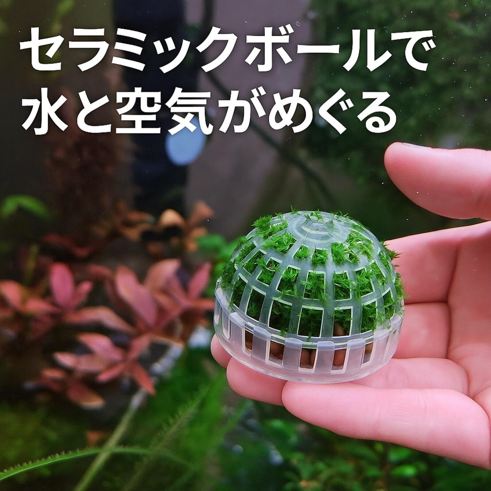 モスドーム内部には、多孔質のセラミックボール(ミネラル素材)を使用しておりますので、通水性と通気性が高く、水質を良好に保つことが期待できます。植物の根が健やかに育ちやすく、長期間にわたり美しい緑をキープする環境を整えることができます。底面に置くだけで安定するため、複数を組み合わせてレイアウトを楽しむことができます。配置次第で水槽全体の印象が変わり、オリジナリティあふれるアクアリウムを作ることが可能です。