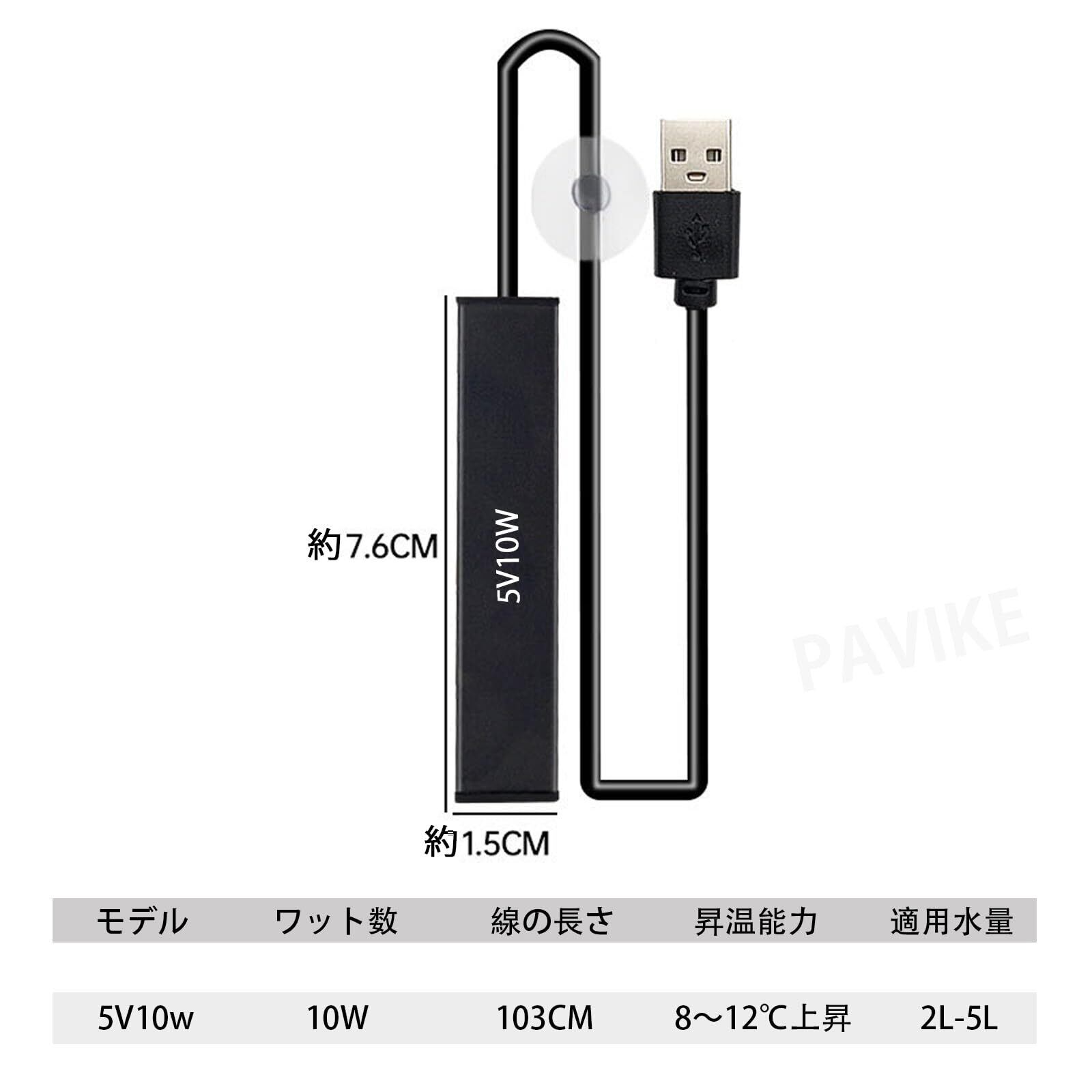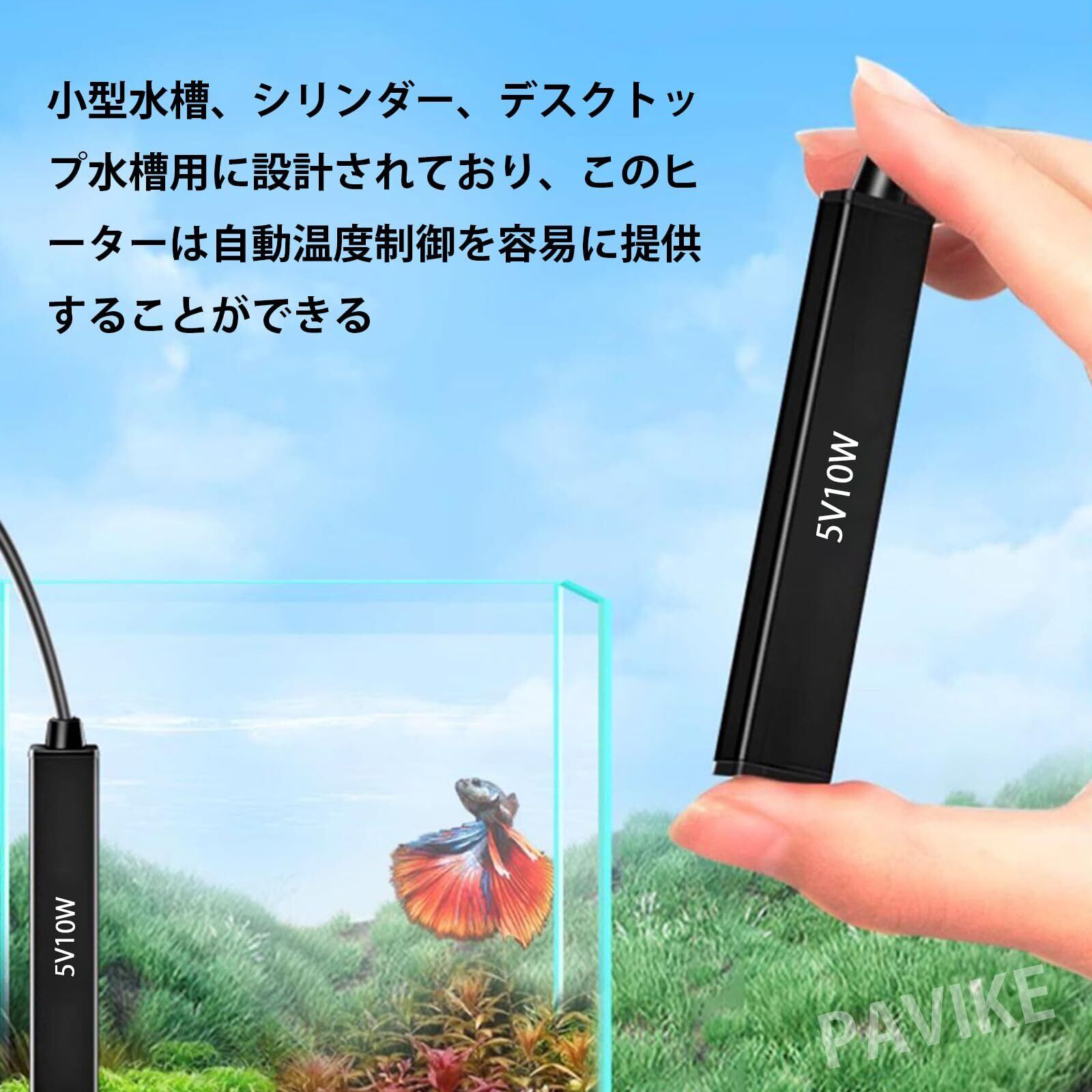 PAVIKE水槽用ヒーター【10W】小型水槽ヒーター ミニ水槽ヒーター 熱帯魚ヒーター USB電源、水槽用品、2L〜5Lの水量に適しており、水槽、魚の飼育などに適し