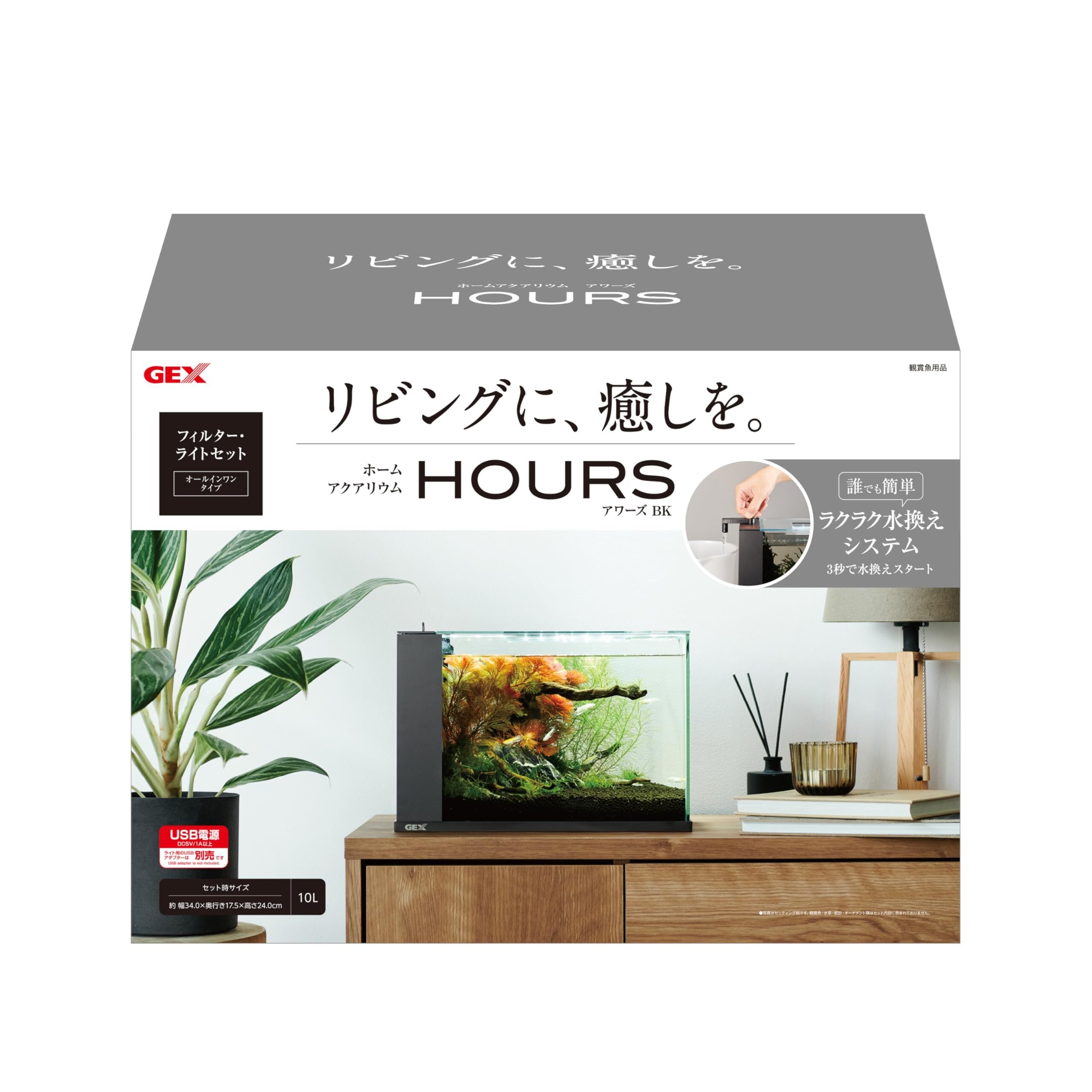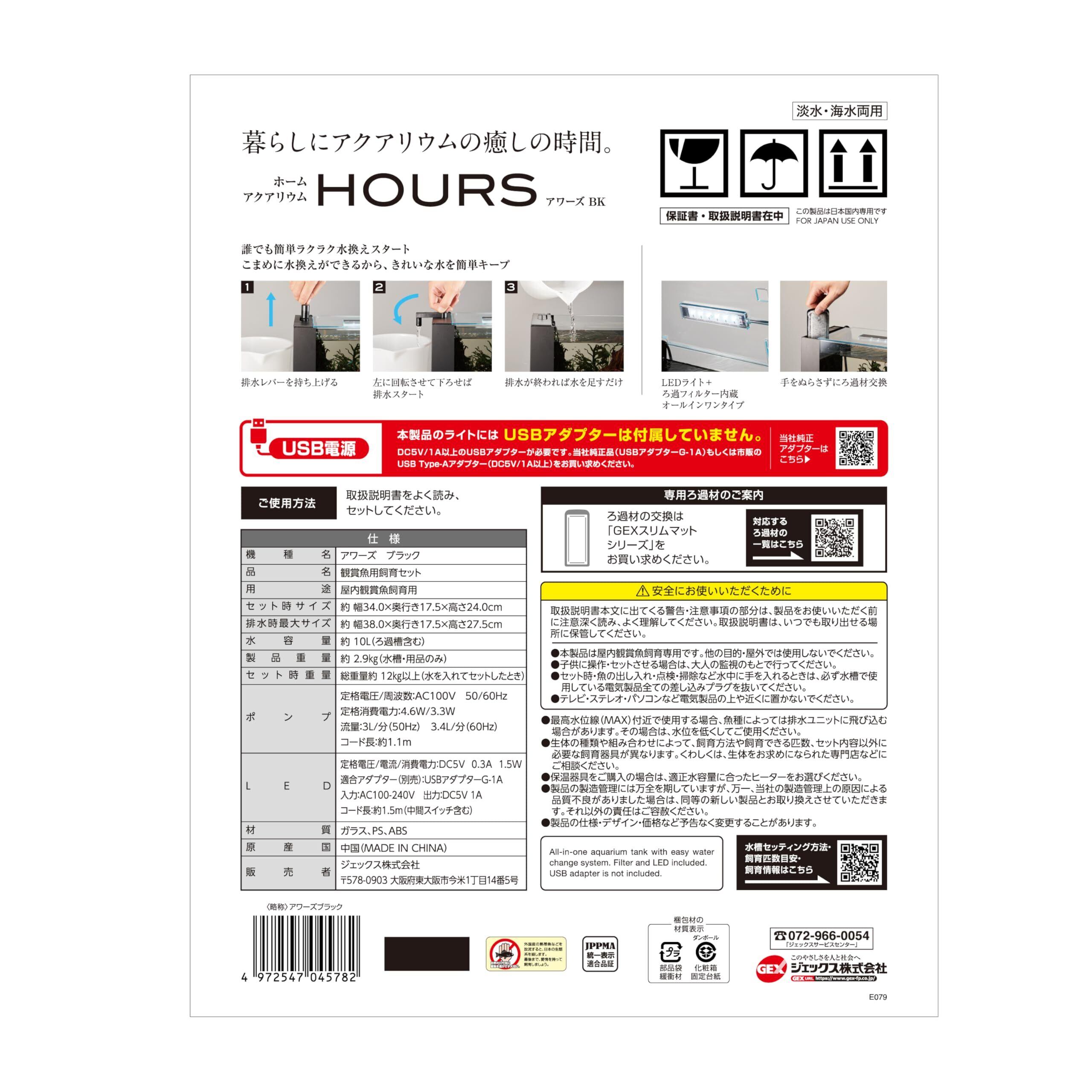 ジェックス GEX アワーズブラック アクアリウム用インテリア水槽 誰でも水換え簡単機能付き LEDライト付き