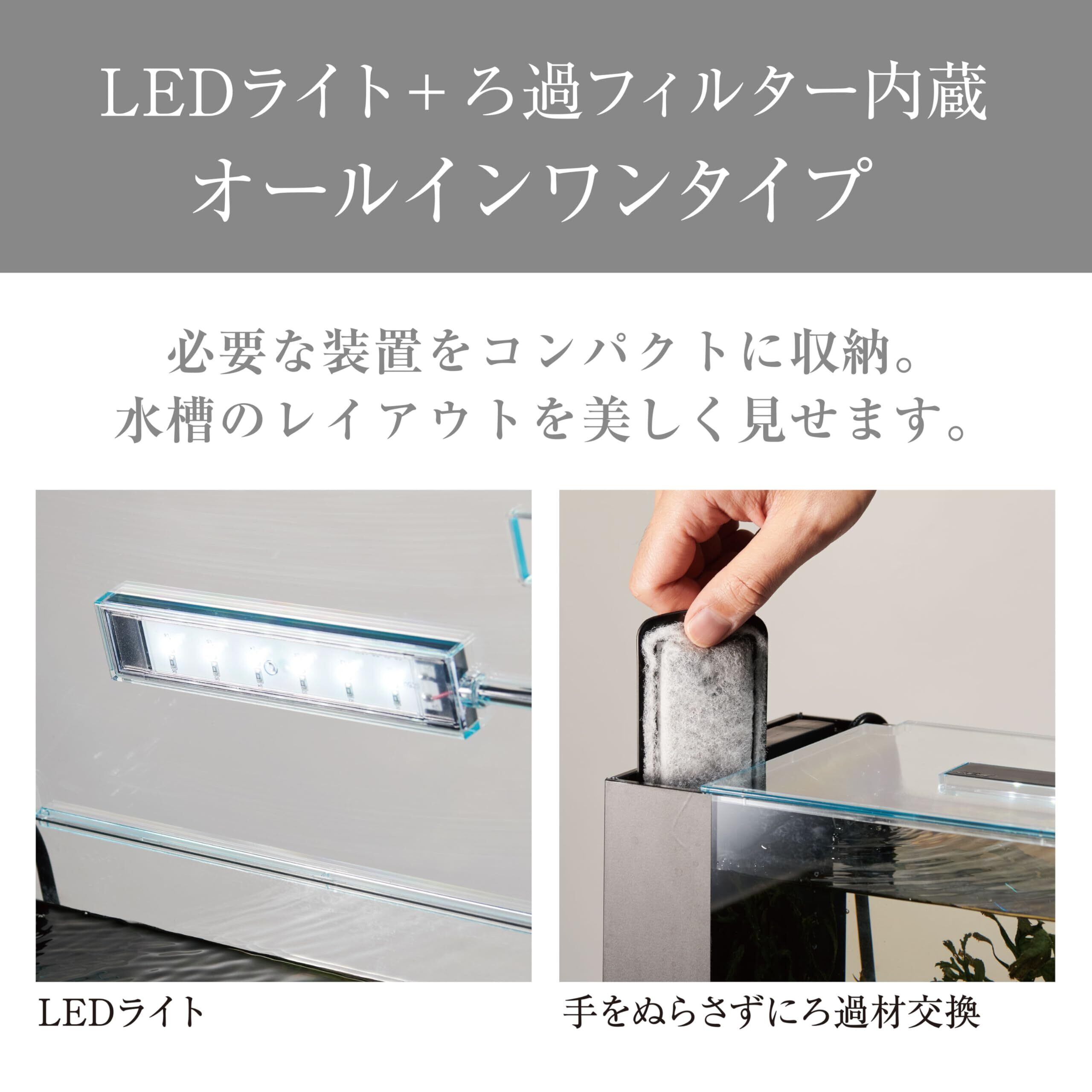 アワーズブラック; アクアリウム用インテリア水槽; 誰でも水換え簡単機能付き; LEDライト付き