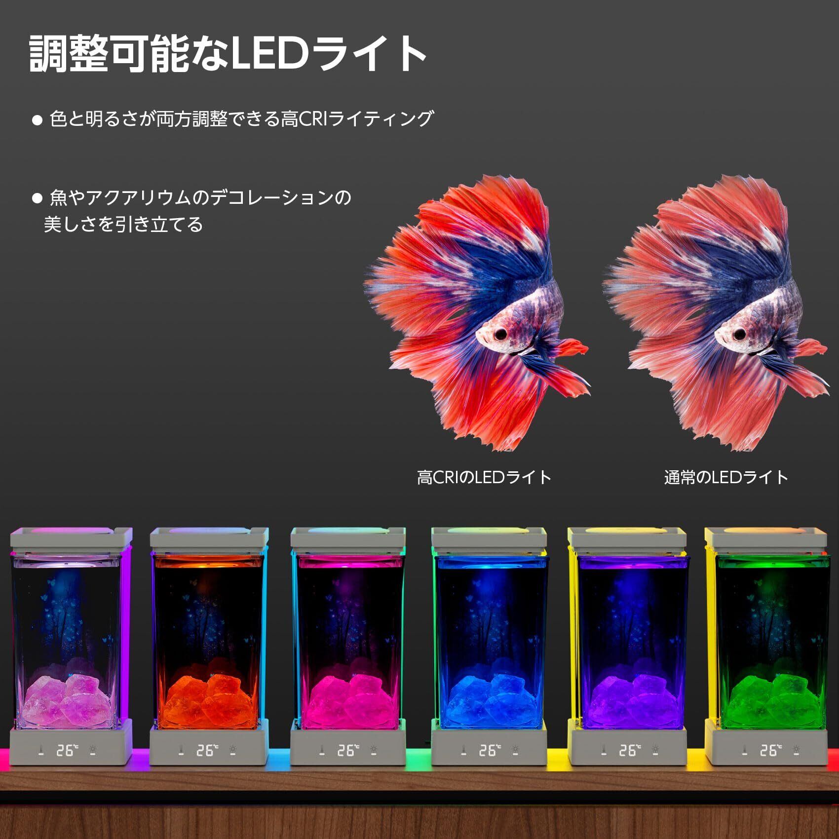 小型ベタ水槽 1.4Lコンパクト水槽キット 20-30°C温度設定 LEDライト付き 水換え簡単 セットアップ・メンテナンス簡単 スタータータンク最適 ホワイト