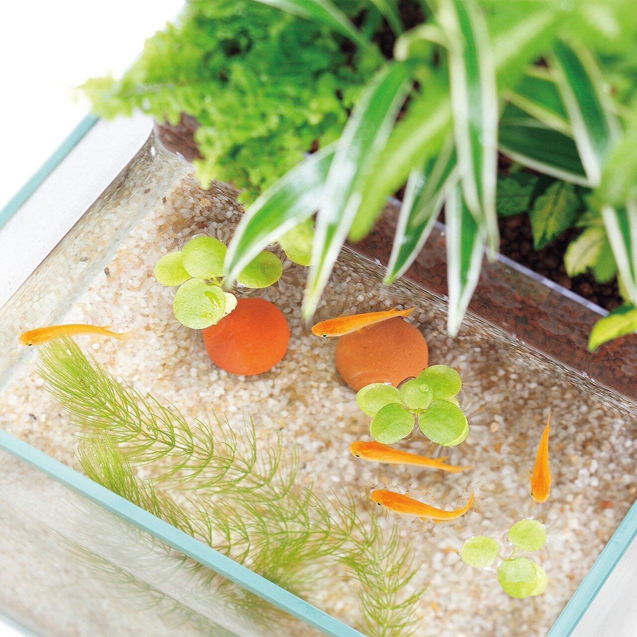 ハイドロカルチャー(水耕栽培)とアクアリウムが一緒に楽しめるメダカ水槽セットです。