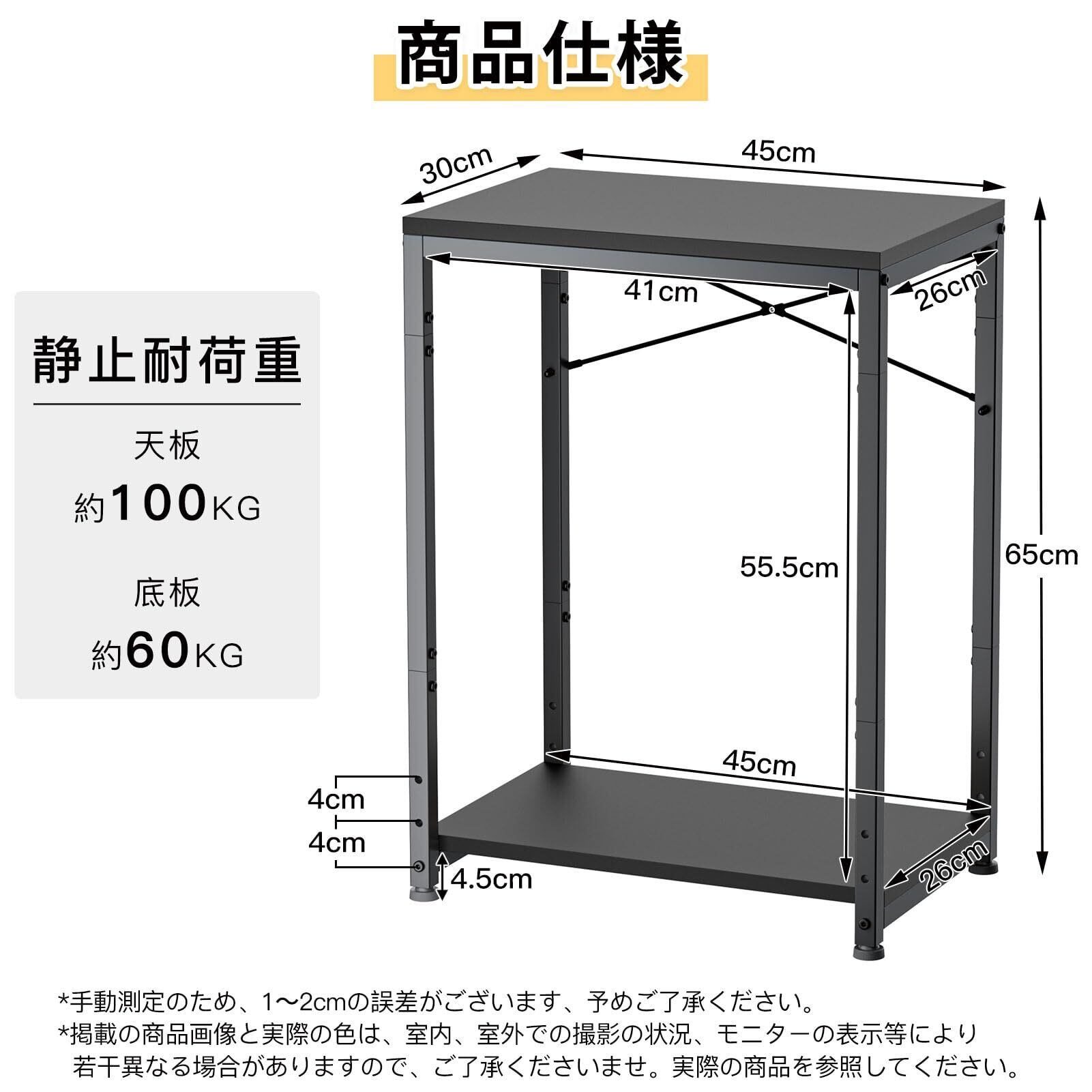 【商品仕様】 ➤サイズ:約幅45×奥行30×高さ65cm(アジャスターを付けた状態) ➤材質:パーティクルボード/メラミン化粧板、フレーム/スチール(粉体塗装) ➤耐荷重:約天板100kg、下棚板60kg